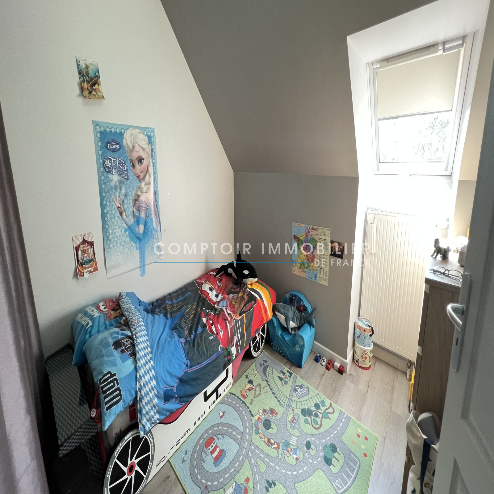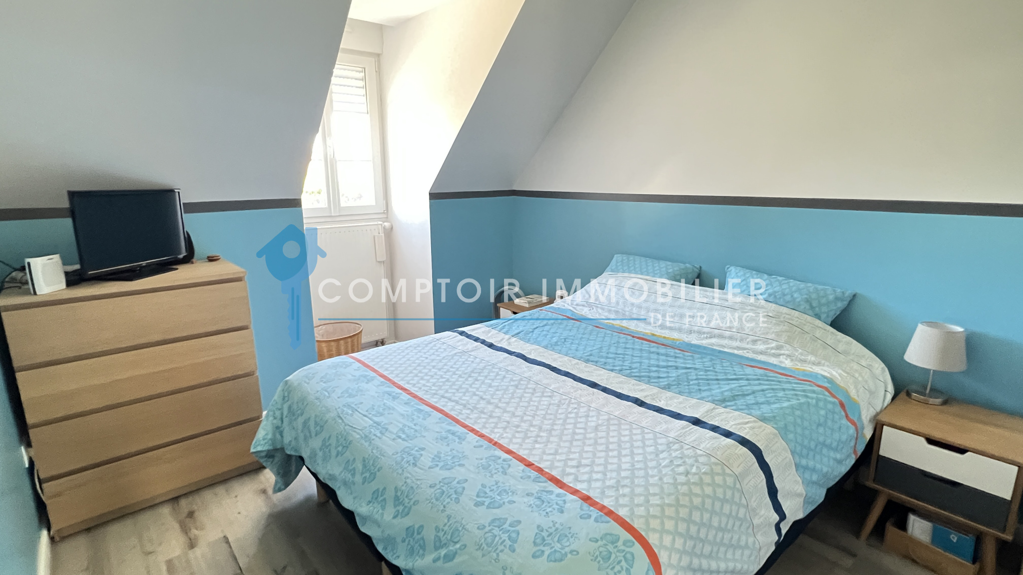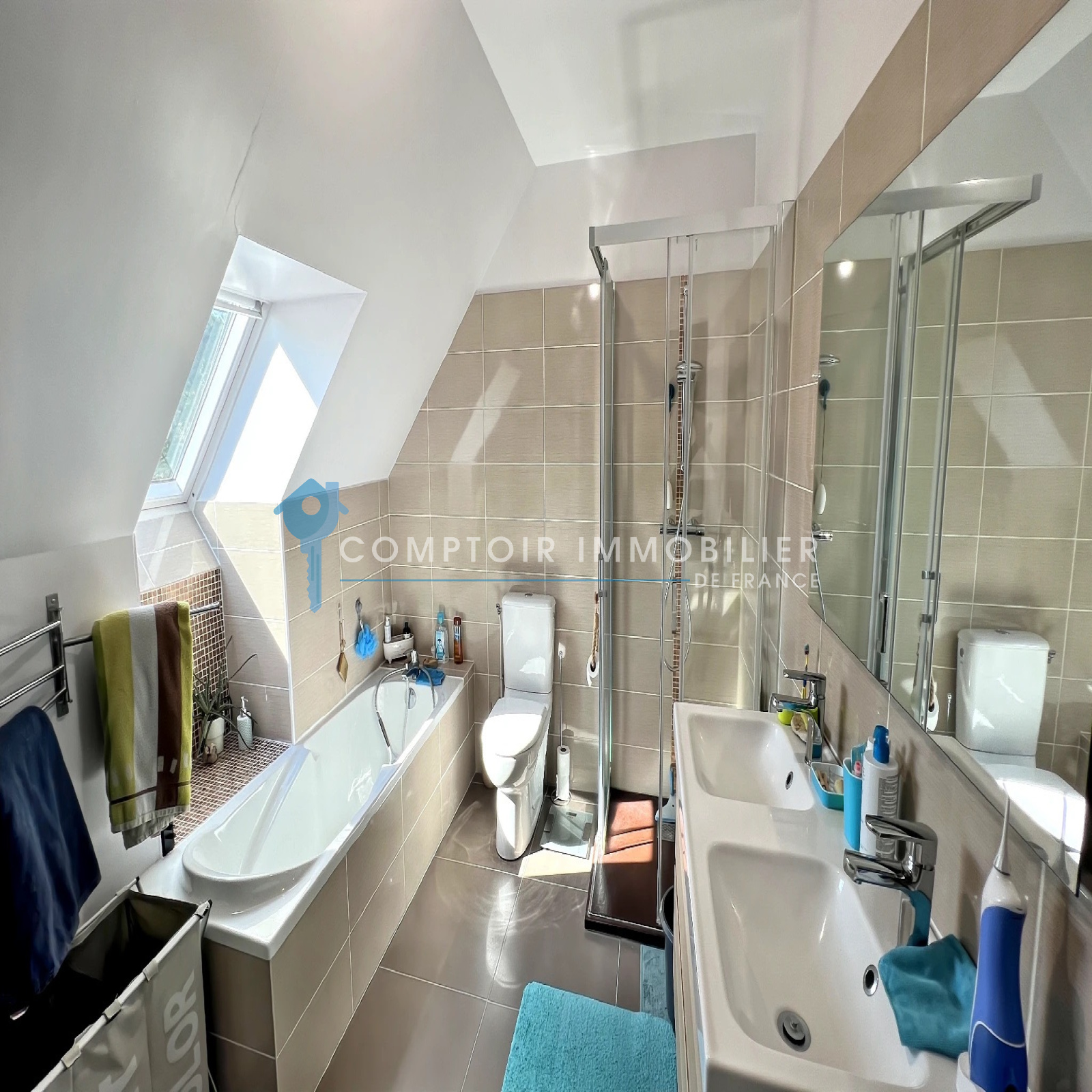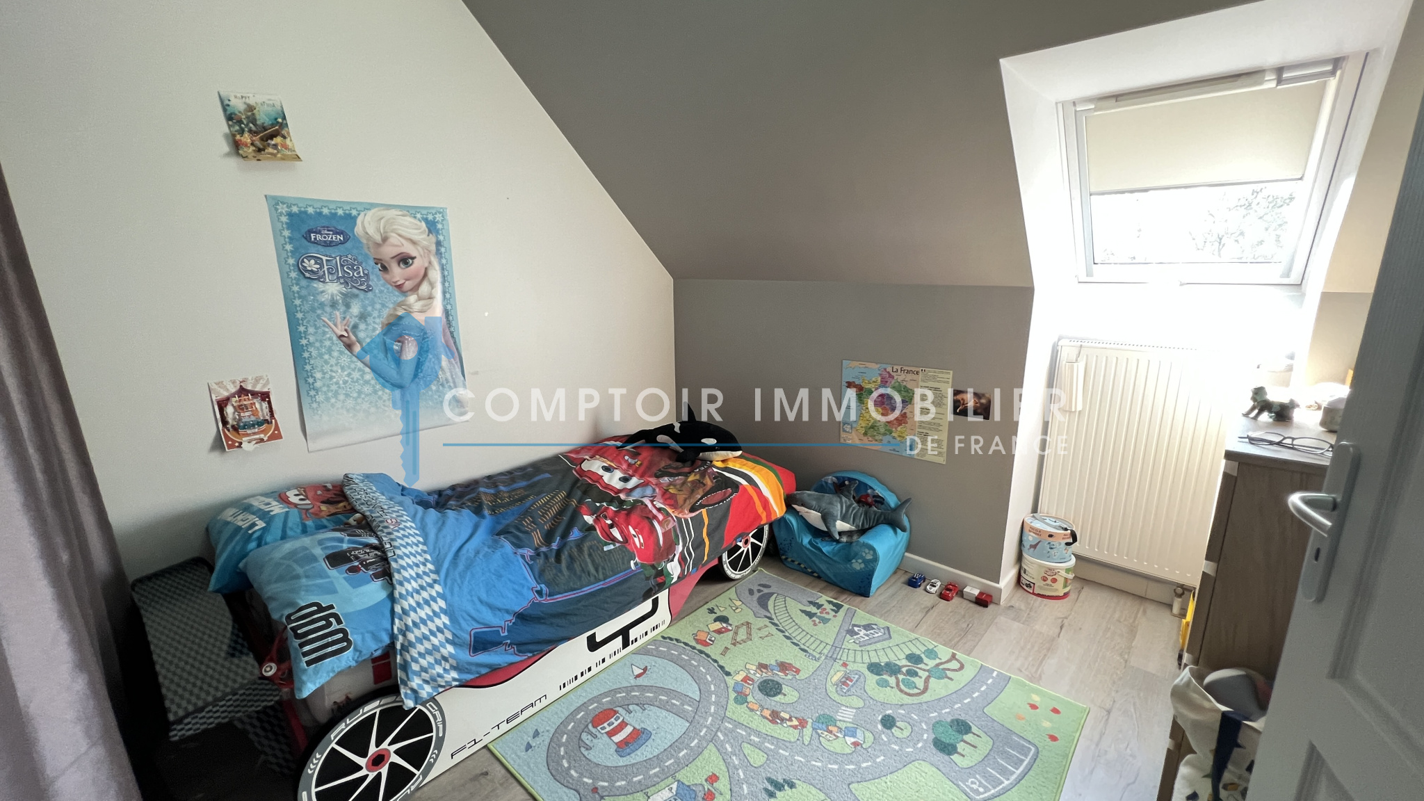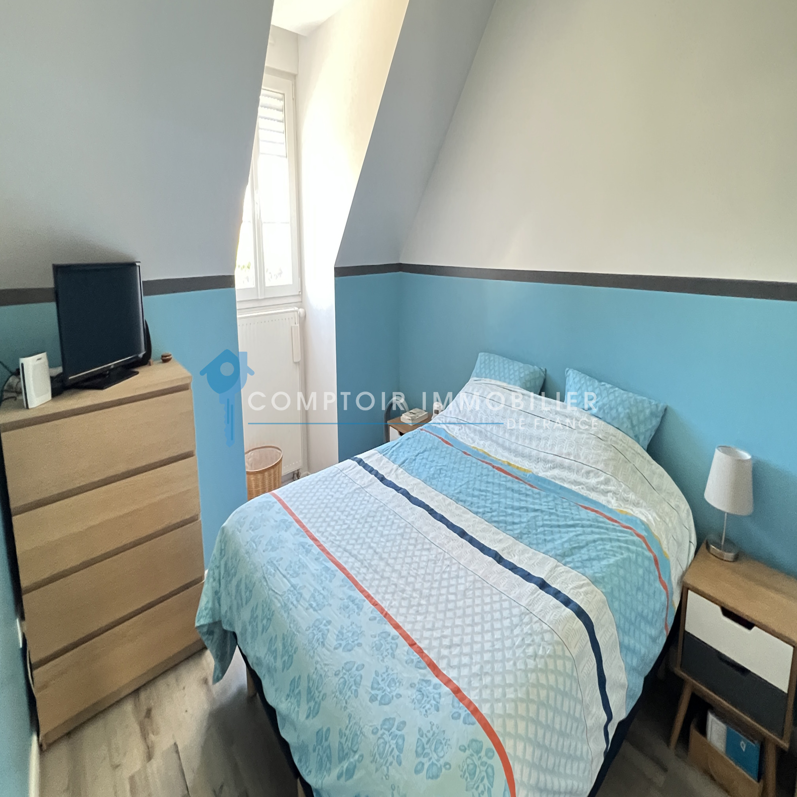 La maison dispose au rdc : d'une entrée , une belle cuisine aménagée et équipée ouverte sur salon/salle à manger, un wc, une buanderie et un garage.