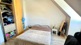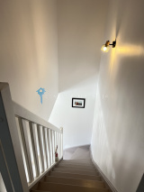 A l'étage : palier desservant trois chambres et une salle de bains avec wc (baignoire et douche).