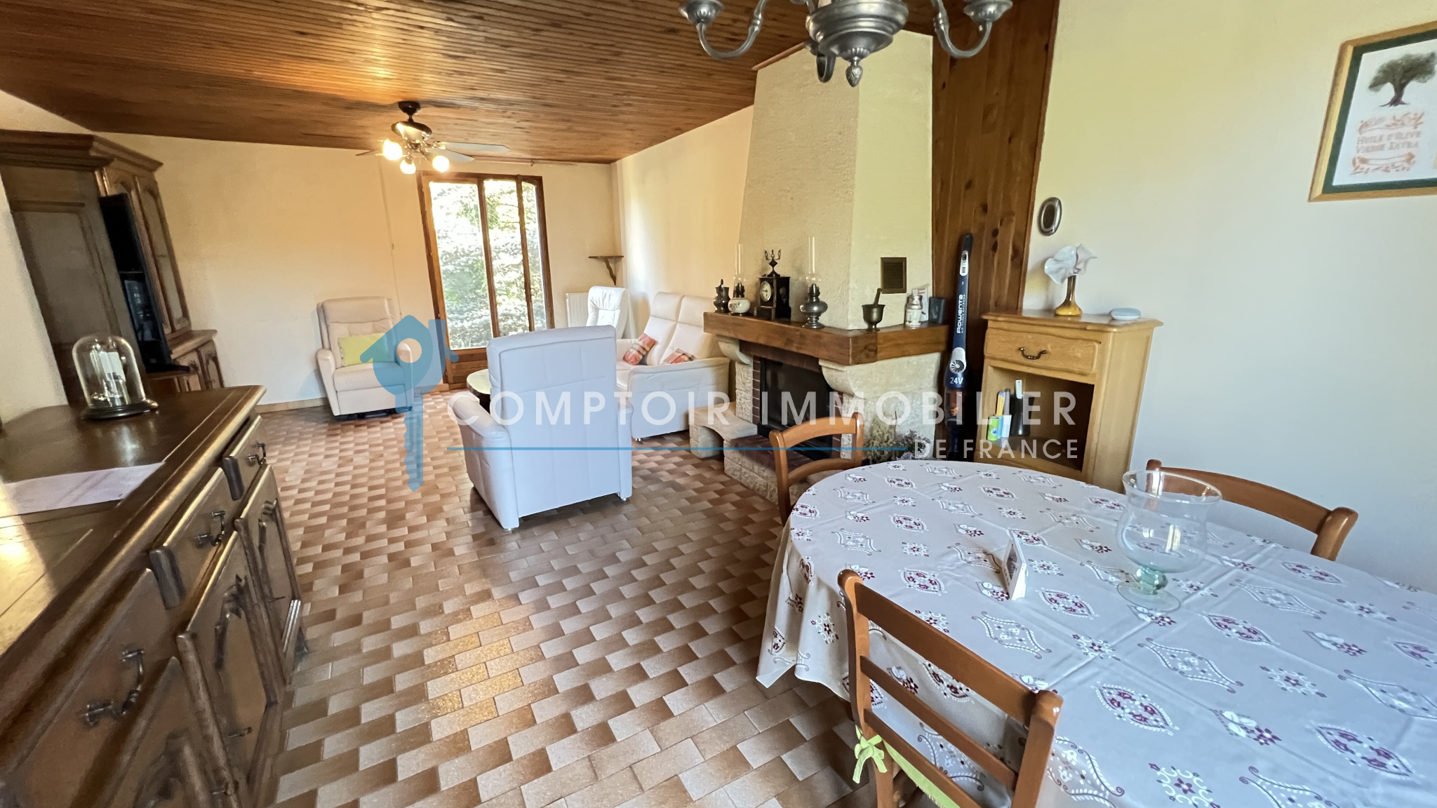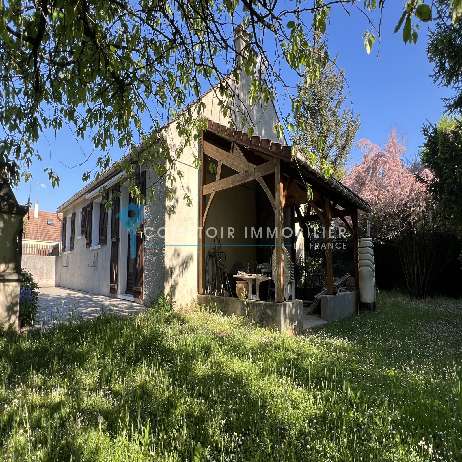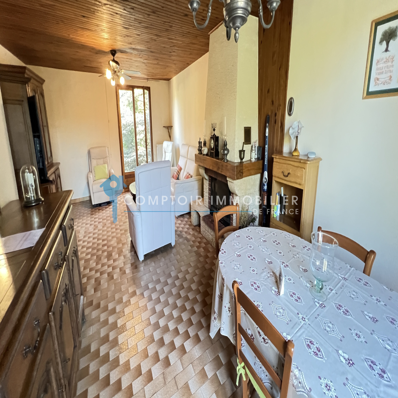 NOUVEAUTÉ et seulement dans votre agence CIF Gatinais - Maison entièrement de plain pied et élevée sur sous-sol total dans quartier calme et recherché de La Ferté Alais à deux pas des écoles ainsi que de la ferme pédagogique comprenant : entrée, salon/séjour avec cheminée donnant sur une belle terrasse exposée plein sud, cuisine aménagée et équipée, dégagement, trois chambres, salle d'eau et wc séparé.