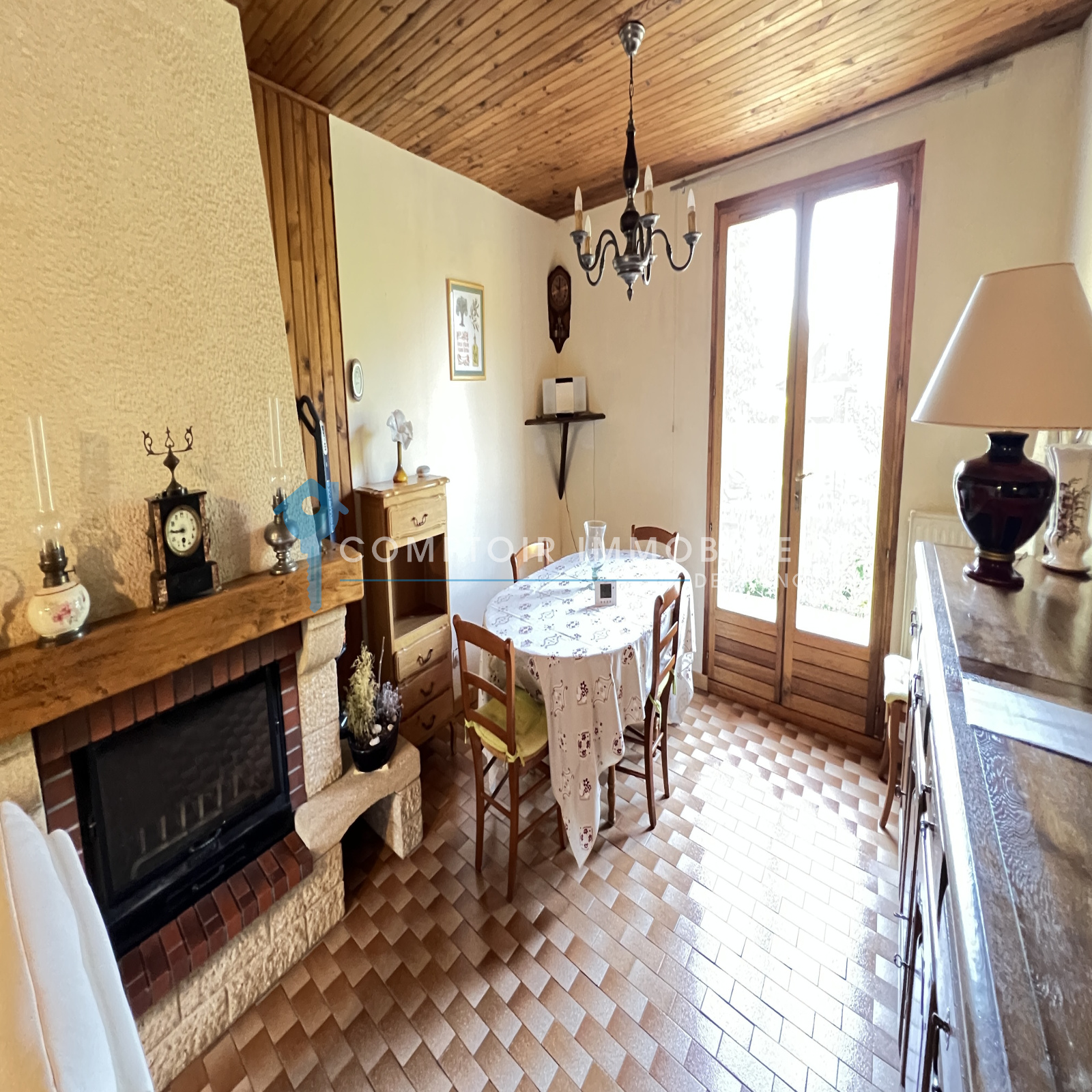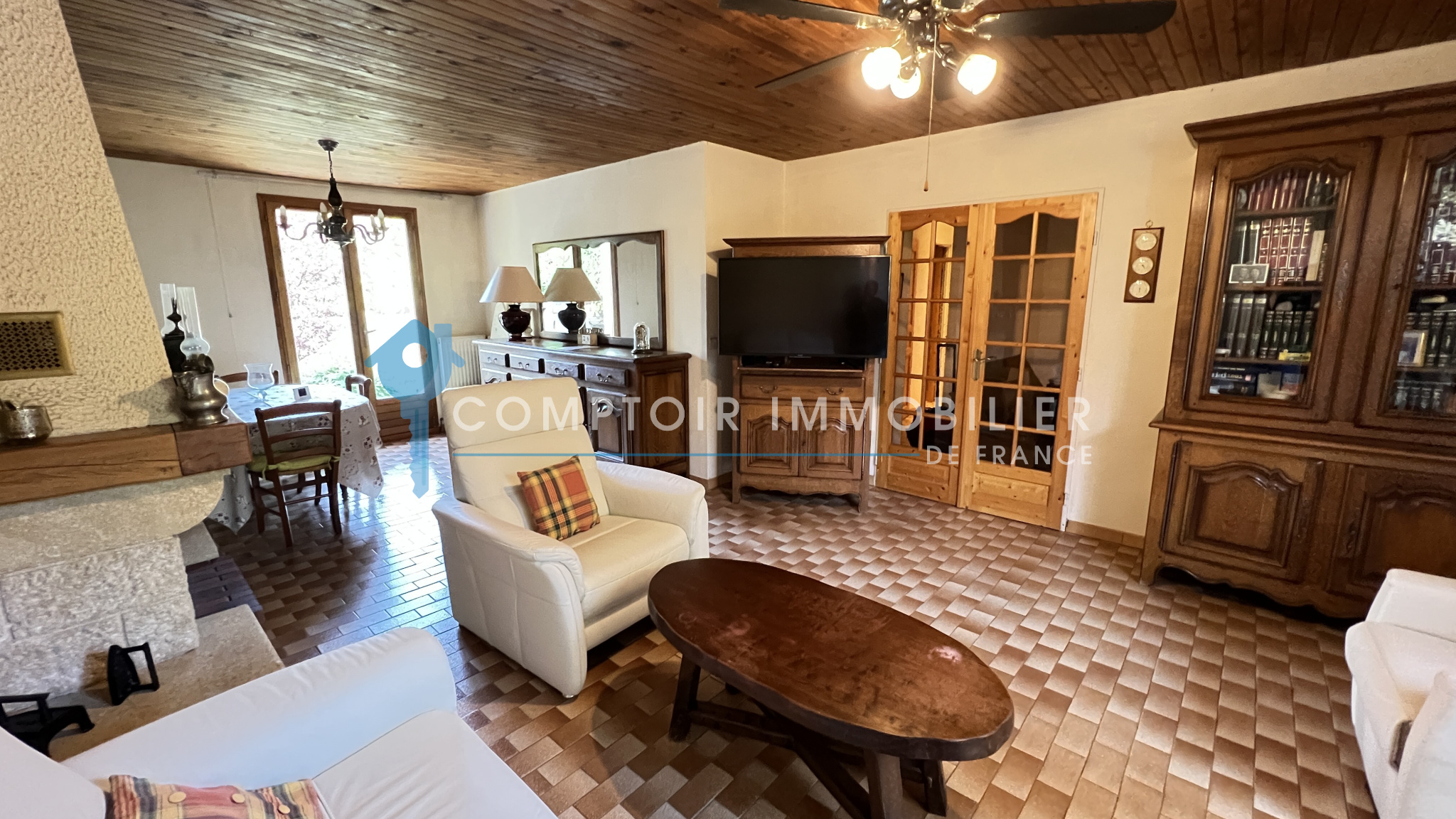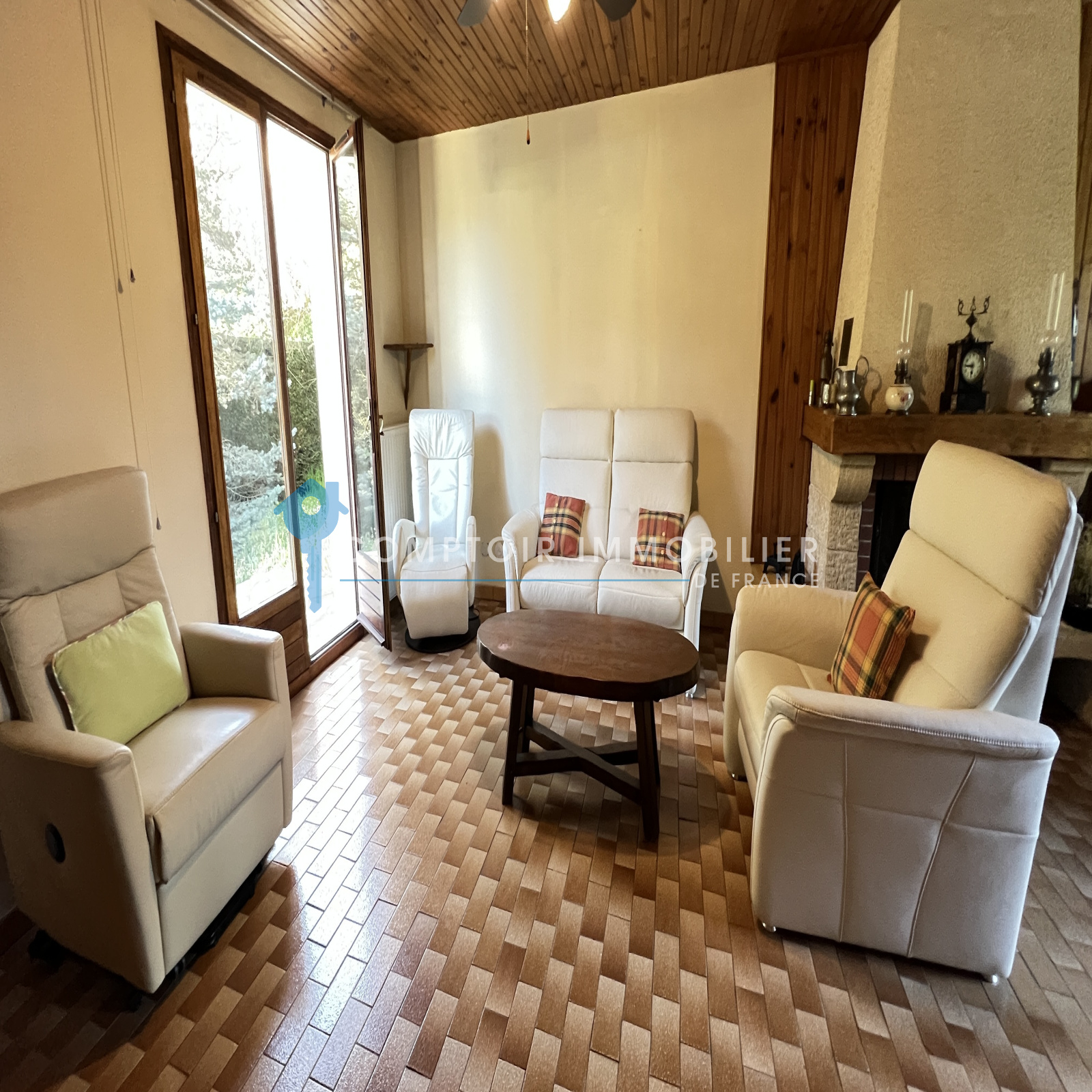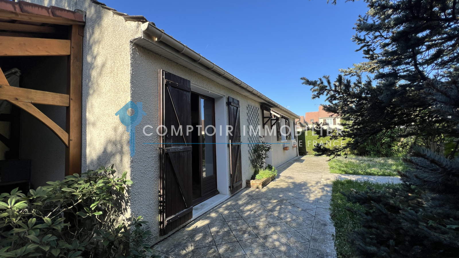 NOUVEAUTÉ et seulement dans votre agence CIF Gatinais - Maison entièrement de plain pied et élevée sur sous-sol total dans quartier calme et recherché de La Ferté Alais à deux pas des écoles ainsi que de la ferme pédagogique comprenant : entrée, salon/séjour avec cheminée donnant sur une belle terrasse exposée plein sud, cuisine aménagée et équipée, dégagement, trois chambres, salle d'eau et wc séparé.
