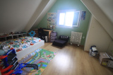 En RDC une cuisine aménagée, une pièce de vie de 42m² avec poêle à granules, une chambre, une salle d'eau, un wc séparé, et à l'étage un grand palier ouvert et deux chambres.