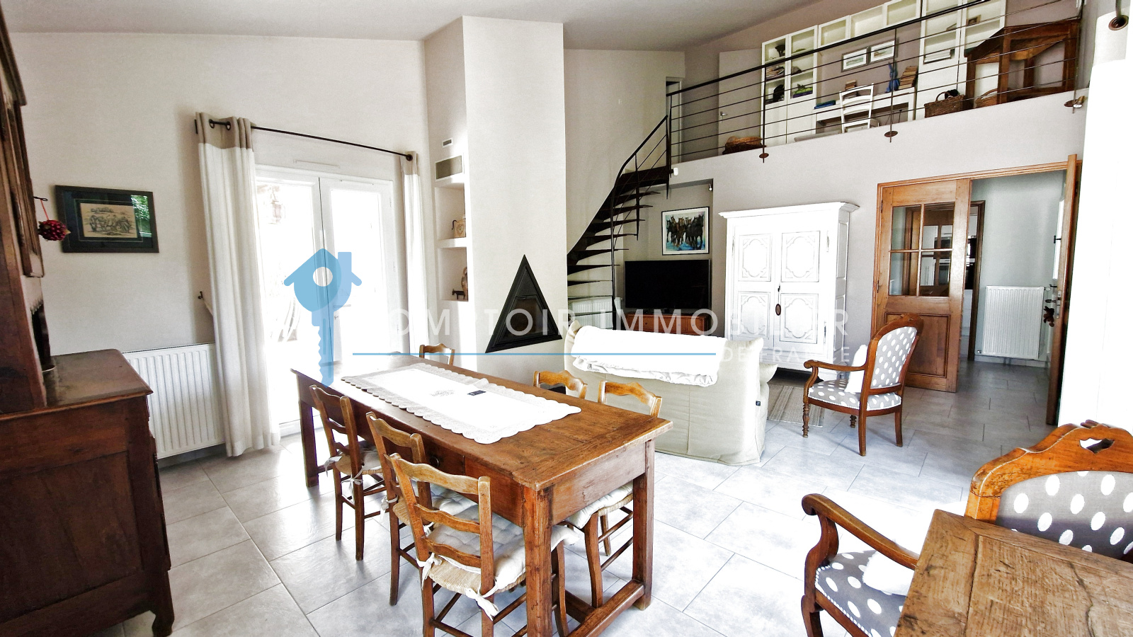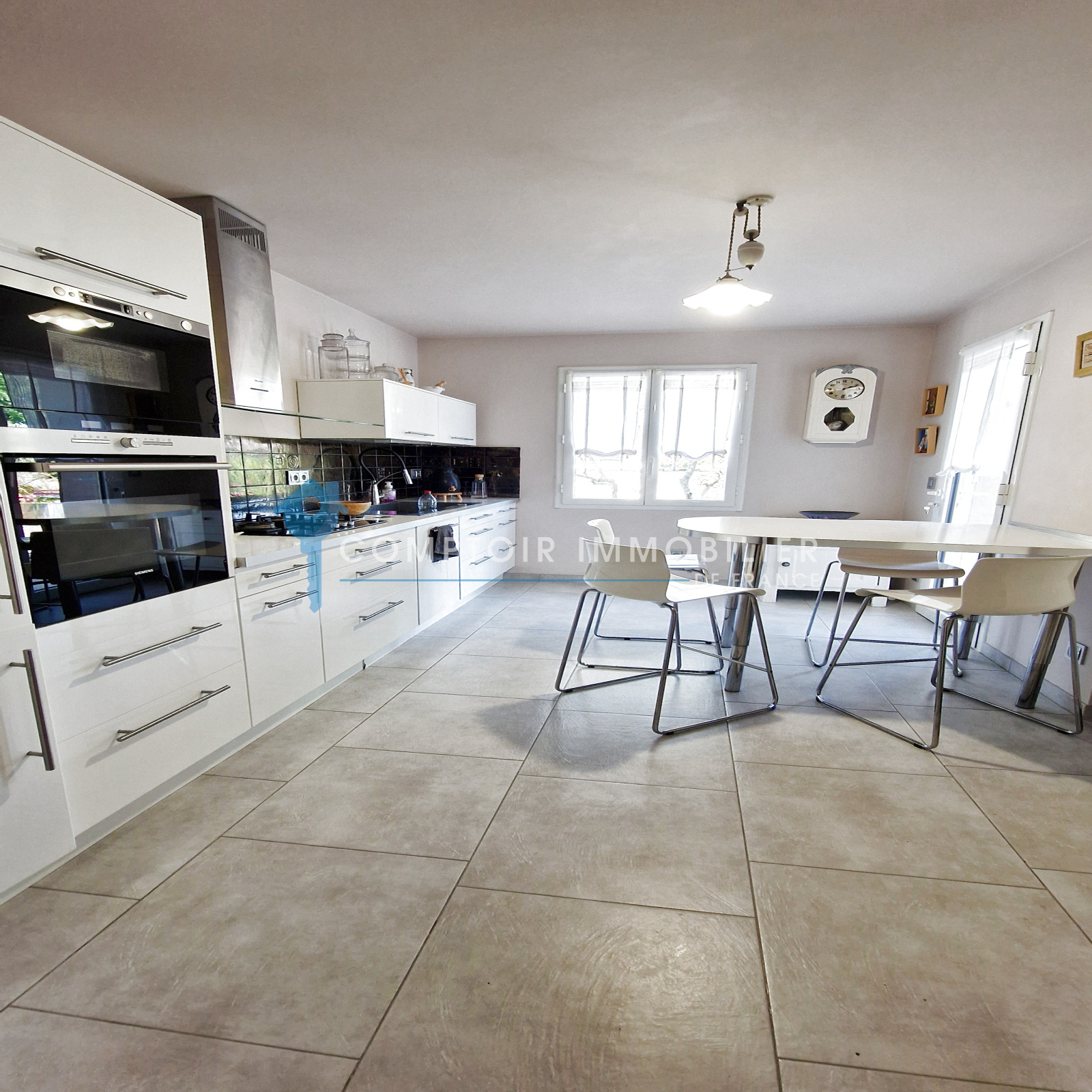 Maison familiale située sur un terrain paysager de 615 m², cette maison de 119 m² allie confort moderne et matériaux de qualité. Elle dispose d’une cuisine équipée contemporaine, d'un séjour de 27 m² agrémenté d’une cheminée avec insert, d'une mezzanine de 8 m² le tout donnant directement sur une vaste terrasse de 30 m² avec accès sur la piscine, idéale pour les repas et la détente.