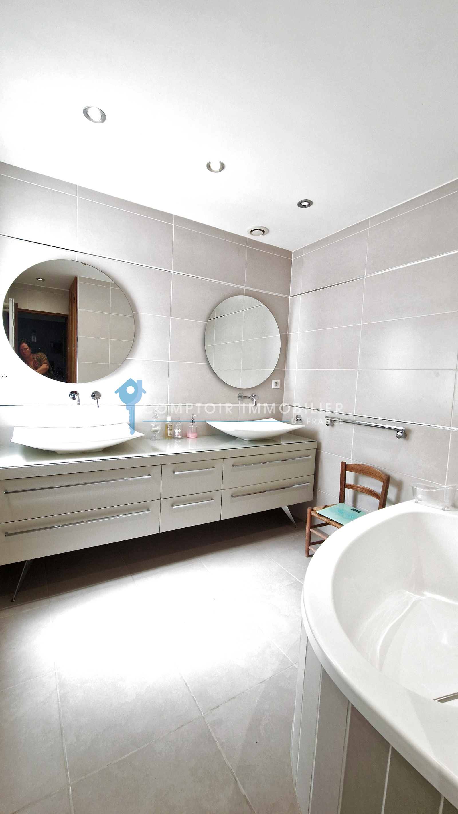 Vous profiterez d'un espace extérieur de 615 M2 très agréable arboré et fleuri ainsi qu’une belle terrasse en travertin donnant sur une piscine où vous pourrez vous détendre et profiter des beaux jours. Cette maison est lumineuse, fonctionnelle, équipée de beaux matériaux ( plancher bois massif, portes faites par un menuisier, faience de Milhau, Bisazza, …)