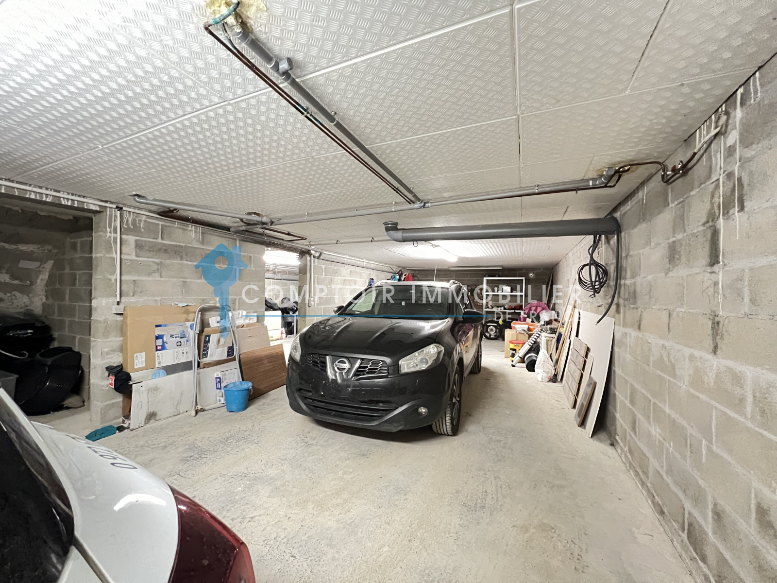 Côté extérieur, vous profiterez d'un terrain de 442 m² avec terrasse et d'un accès au sous-sol pouvant accueillir jusqu'à 3 véhicules.