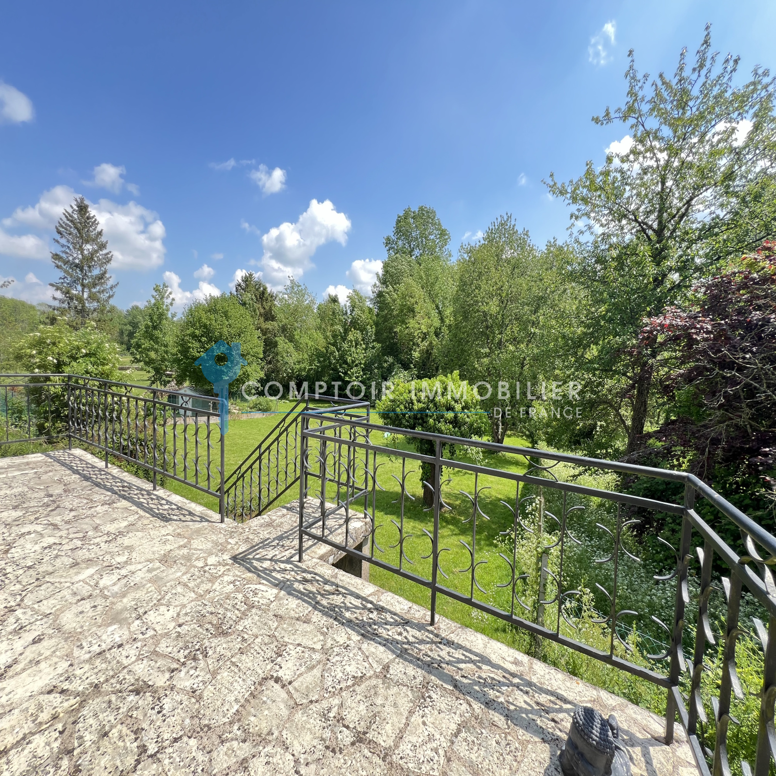 La maison principale d'environ 114 m² habitables se compose au rez-de-chaussée d'une entrée, un salon/séjour avec cheminée insert donnant accès à une terrasse et une magnifique vue dégagée sur le jardin, une cuisine aménagée équipée, un wc indépendant et une salle de bain.