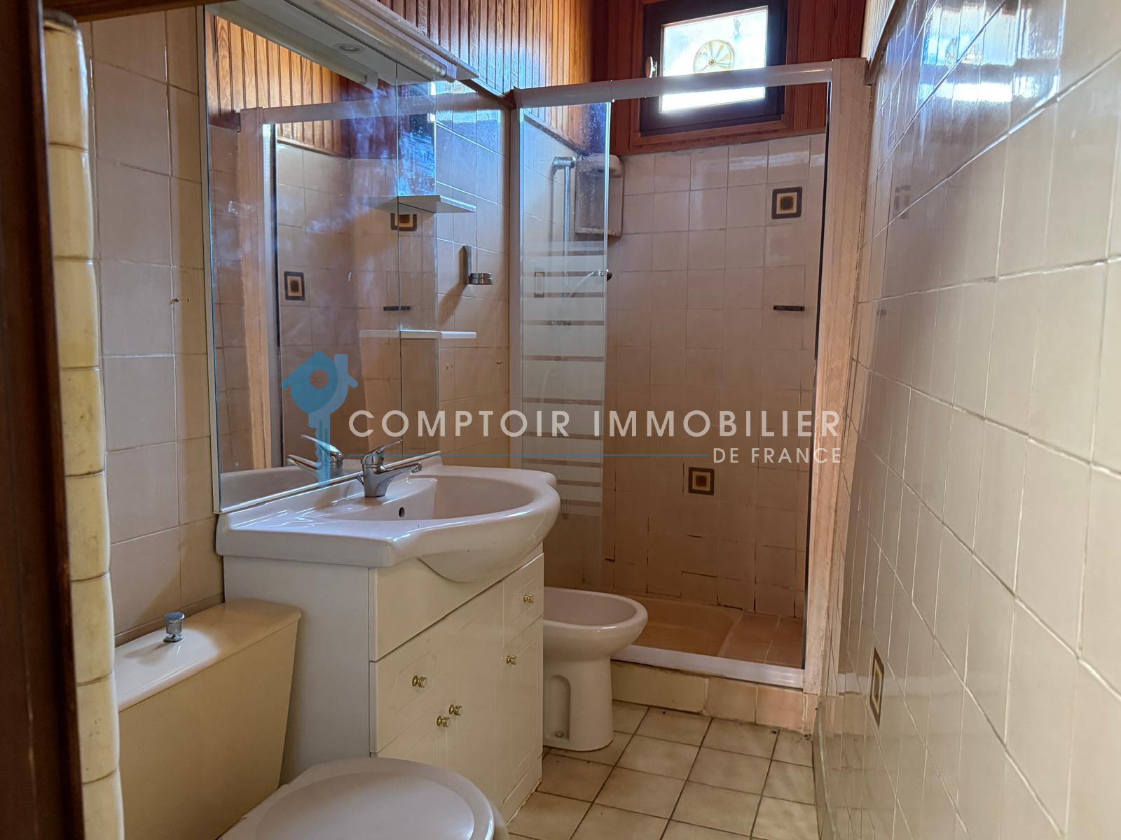 Au 1er étage : 1 cuisine meublée 15 m², 1 salon/séjour 15;50 m² avec cheminée à insert 1 chambre de 15.50m² avec balcon, 1 salle d'eau + wc- chauffe-eau et sèche serviette