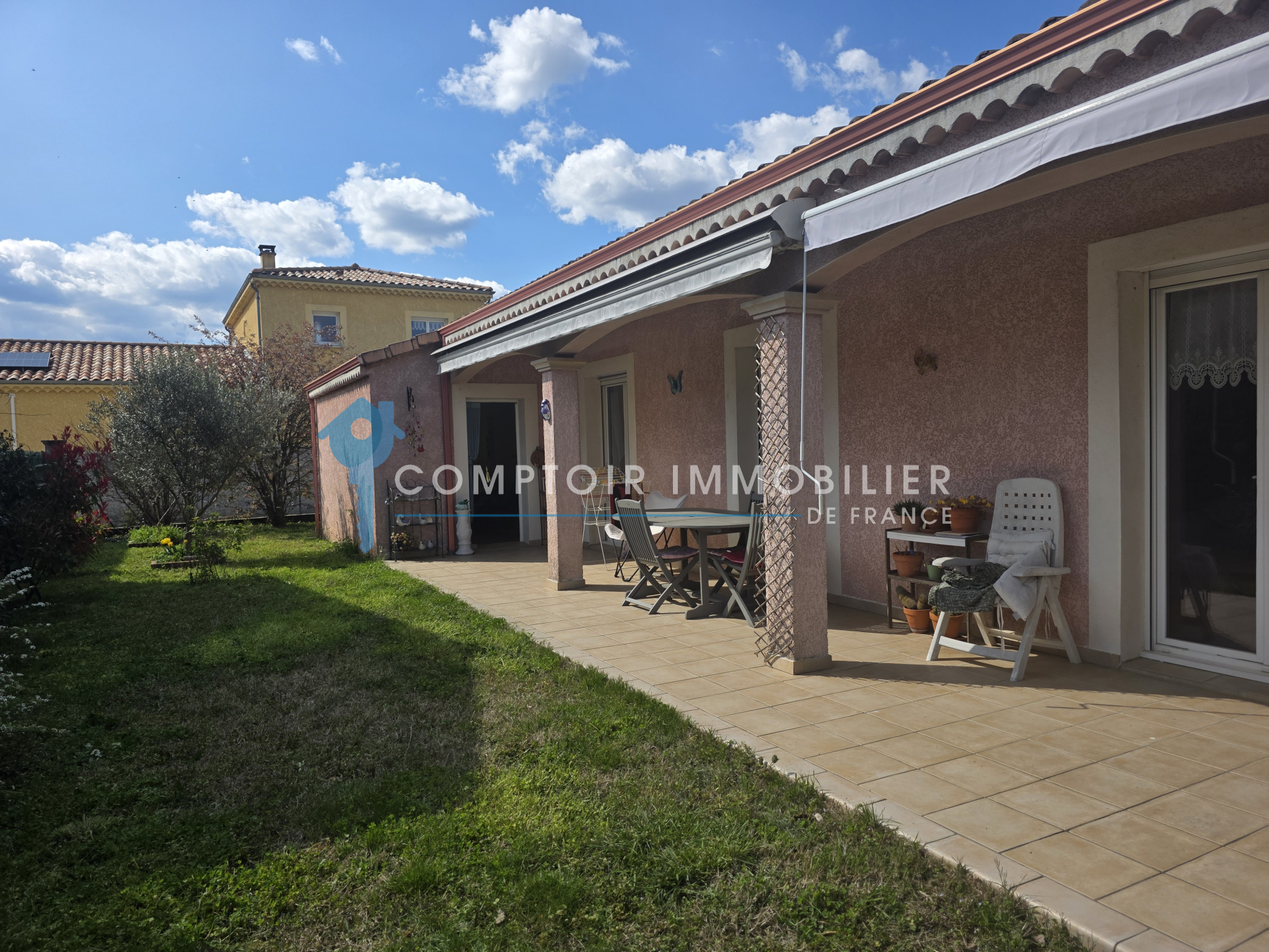 Proche d'Aubenas, charmante villa de 116 m² sur un terrain de 802 m² de terrain plat, clôturé et sécurisé dans un cadre tranquille.