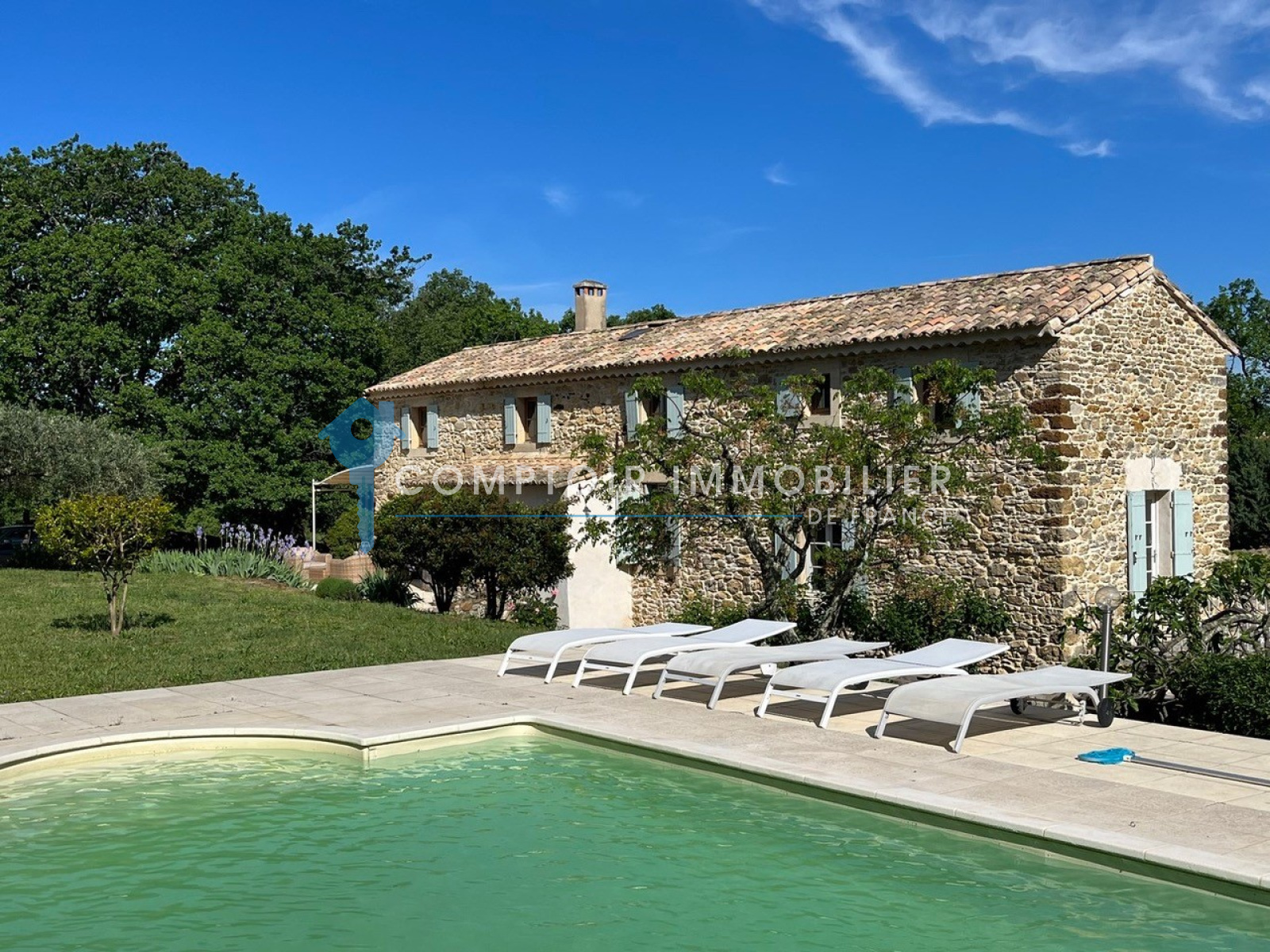 ENTRE UZES ET LA VALLEE DE LA CEZE : Joli mas Provençal dans un cadre verdoyant avec piscine. 140 m2 habitables avec possibilité extension pour un minimum de 180 m2 avec dépendances, cette bâtisse de caractère et de charme possède 5 chambres dont 1 en rez de chaussée, 2 salles d'eau et une cuisine indépendante. Les agrandissements possibles sont constitués d'une grange (environ 36m² au sol), d'une grande mezzanine de 17m² et une annexe couverte attenante d'environ 40m². Le terrain de 5600 m2 superbement arborés de magnifiques chênes, arbres fruitiers et agrémentés d'essences méditerranéennes. Il accueille une très belle piscine Desjoyaux (5x10) et procure à cette propriété un cadre idylique. Présence de grandes caves en partie voûtée et d'une cave à vin. Située dans un environnement touristique immédiat très important, cette belle propriété possède d'évidents atouts.