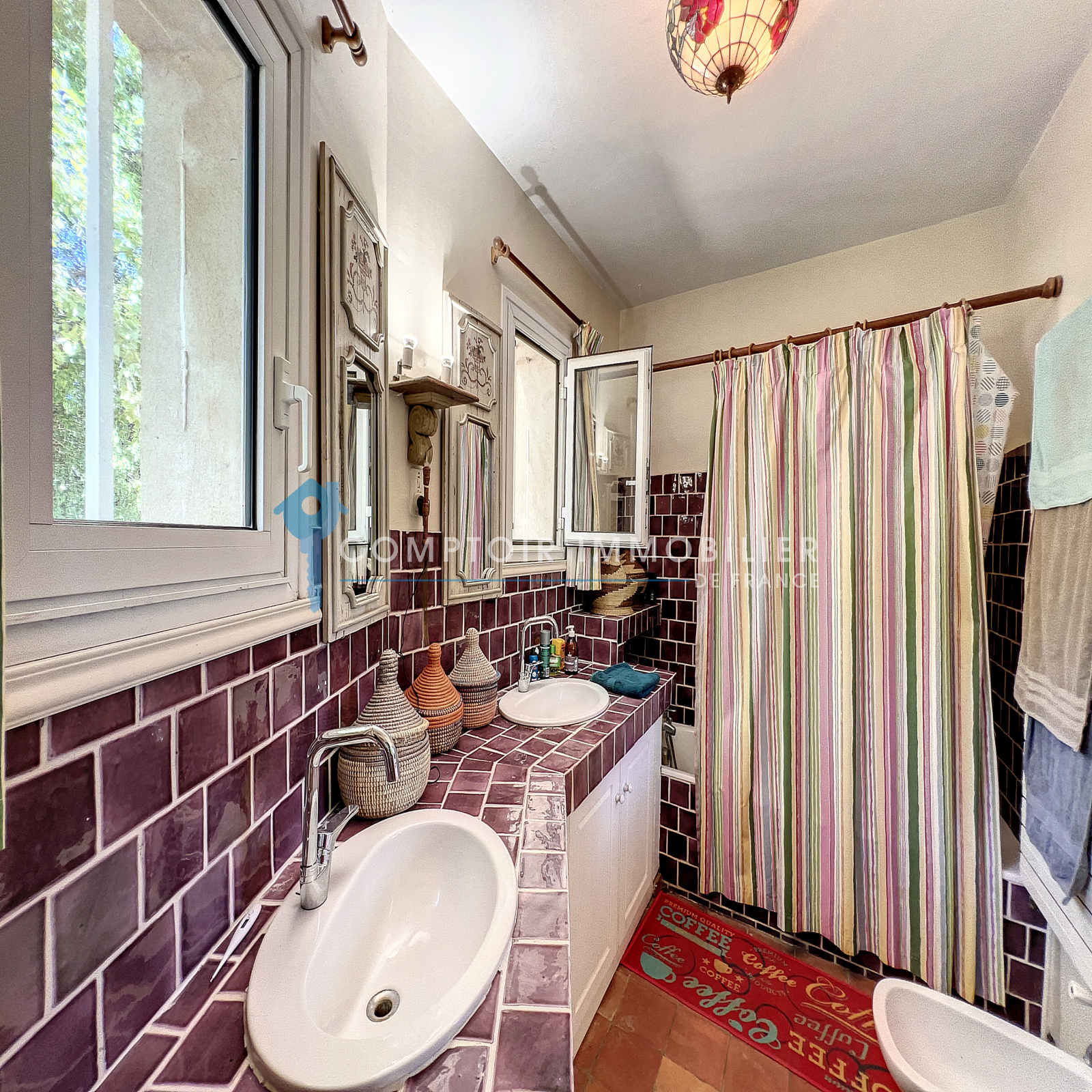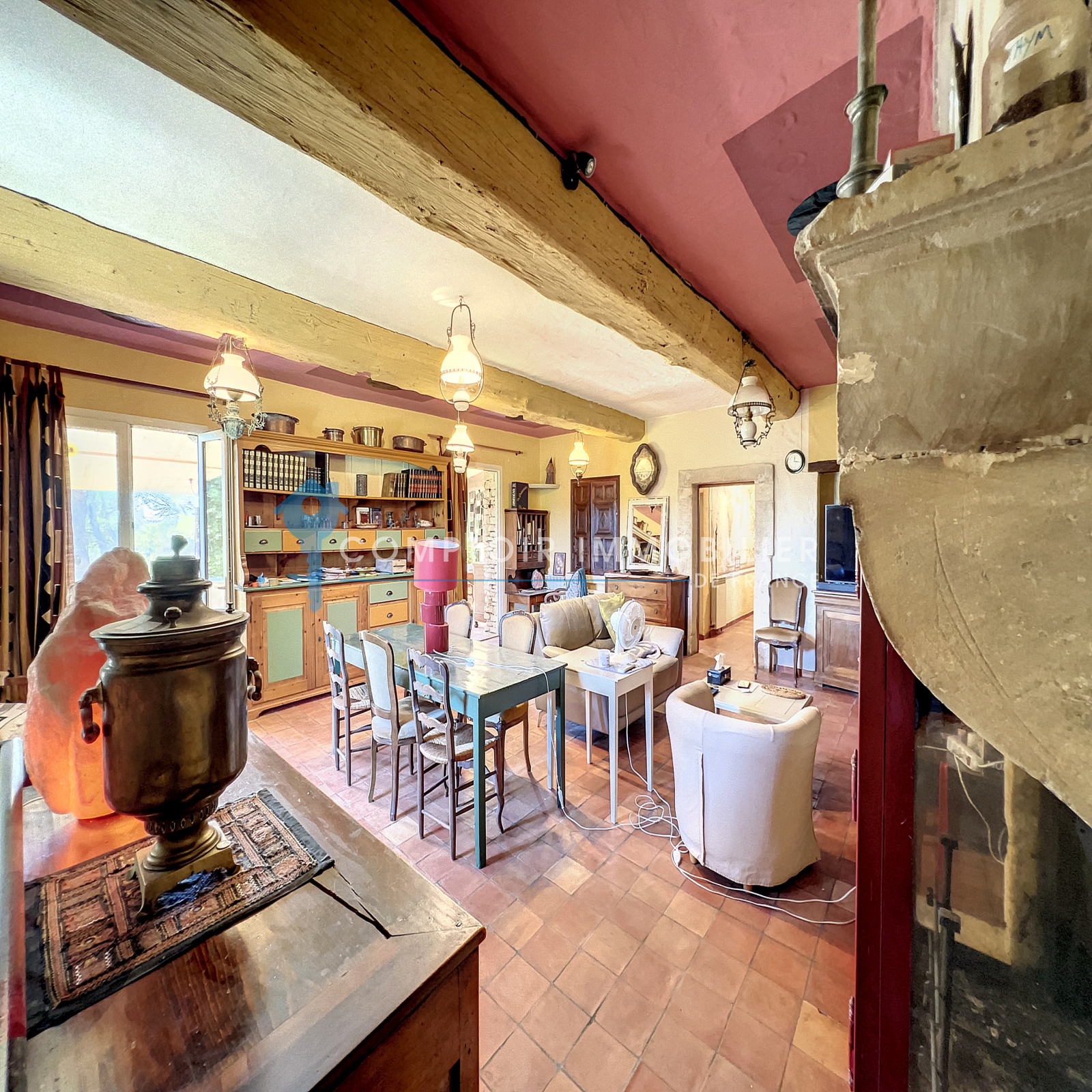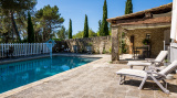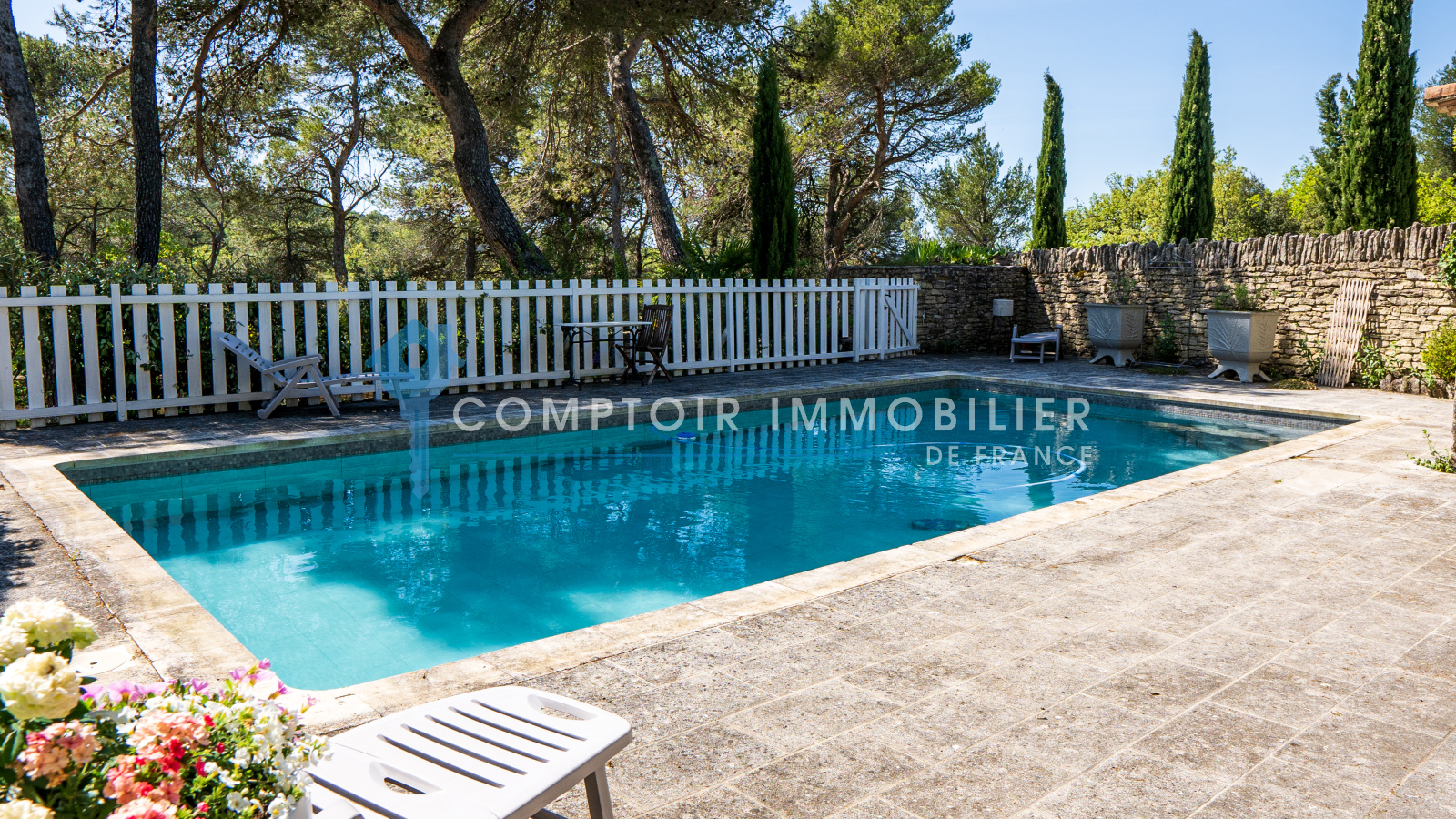 Le tout représente plus de 360 m² habitables sur un terrain de plus de 2ha plantés d’essences locales (chênes truffiers, oliviers, cyprès…) et un jardin clos de murs en pierre autour de la maison avec un espace piscine (10x5 m) et son pool-house, un terrain de pétanque, terrasses, potager…