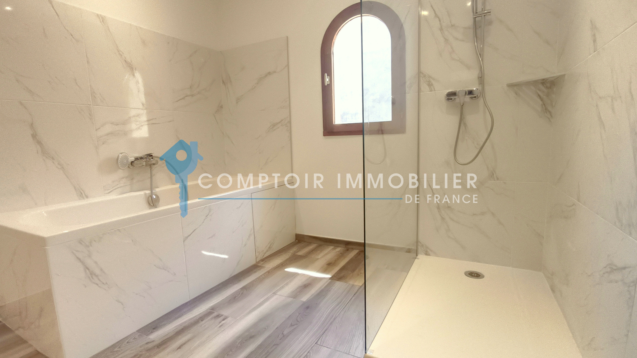 Elle se compose au rez-de-chaussée d'une très grande pièce à vivre, un coin salon, une buanderie et un WC. A l’étage 3 chambres dont une suite parentale avec dressing et douche, un WC et une salle de bain de bain équipée d’une baignoire et d’une douche.