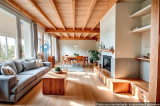Pièce de vie avec insert et climatisation réversible, coin salon, cuisine meublée, 5 chambres avec placards, 2 salles de bains, 2 WC, cellier.