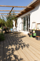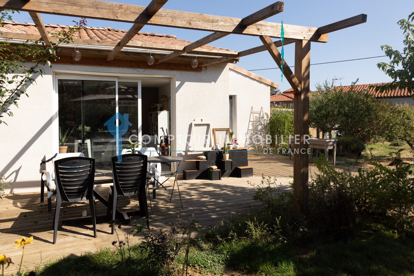 Un accès à la terrasse depuis la cuisine et pièce de vie. Cette agréable terrasse vous permettra de profiter de bons moments en famille.