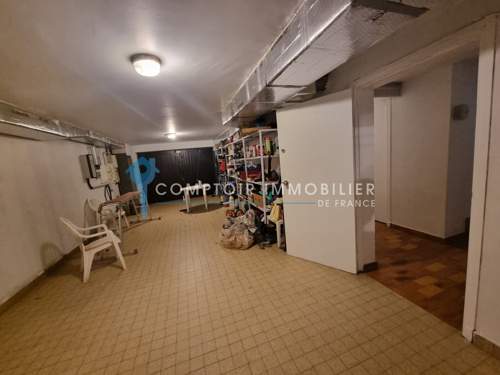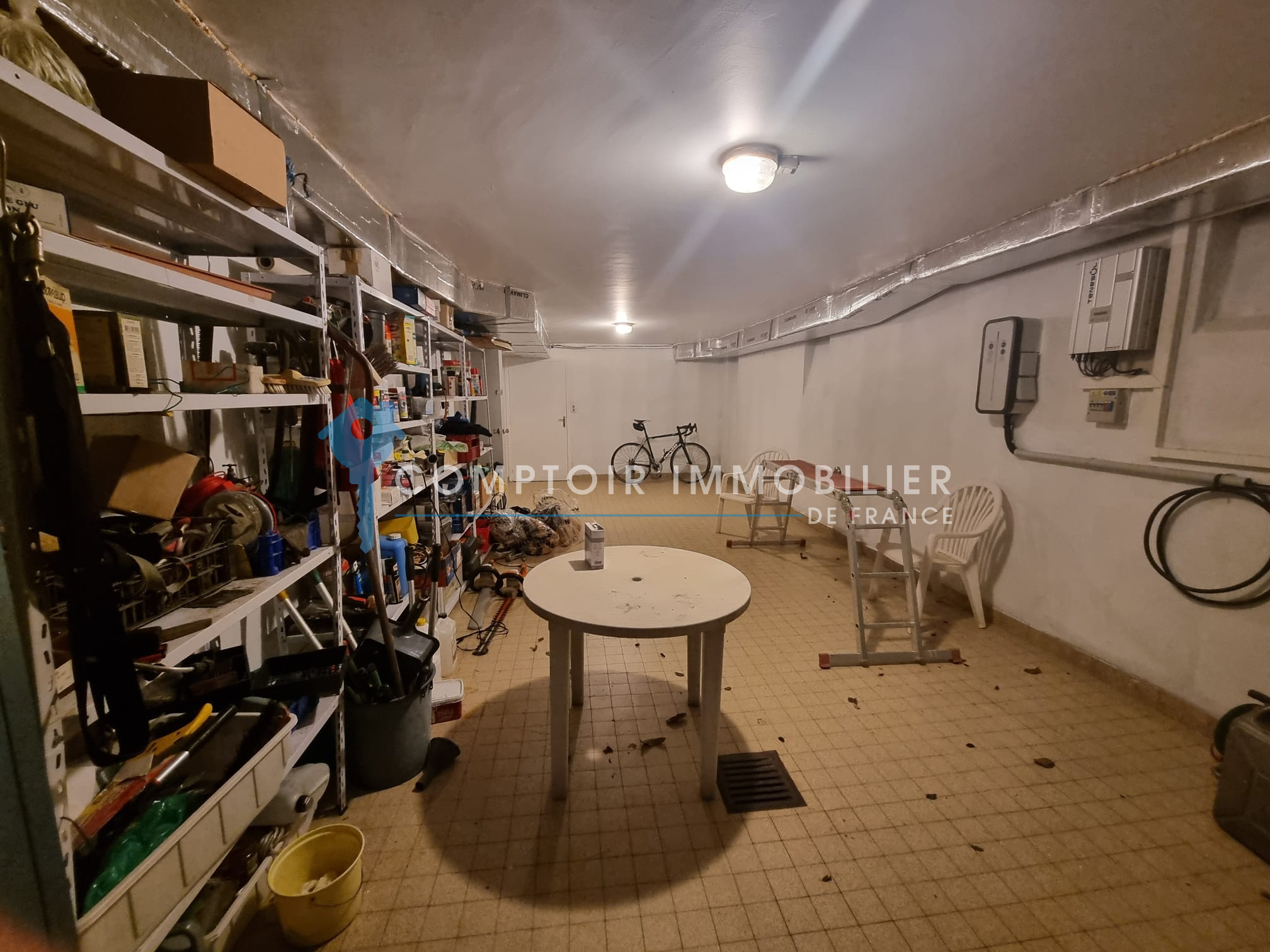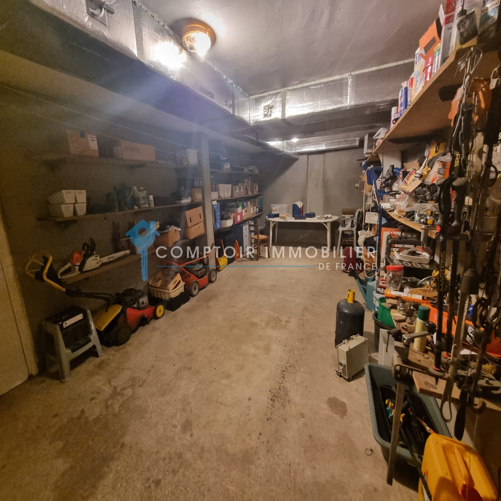 Grand sous sol partiellement amenagé avec 2 bureaux pouvant se transformer en appartement, une chaufferie. Il y a ensuite une garage de 36m2 et deux grandes caves de 44m2 et 28m2.