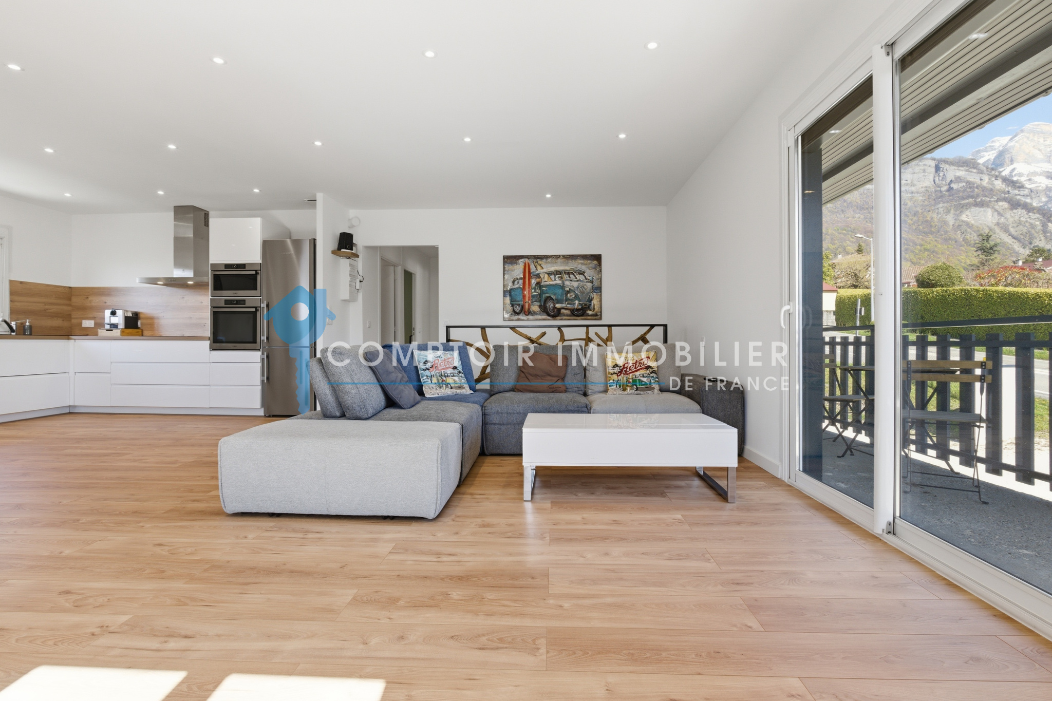 A l'étage une grande pièce de vie de 48m2 donnant sur les balcons vue Belledonne avec accès à la terrasse et au jardin.