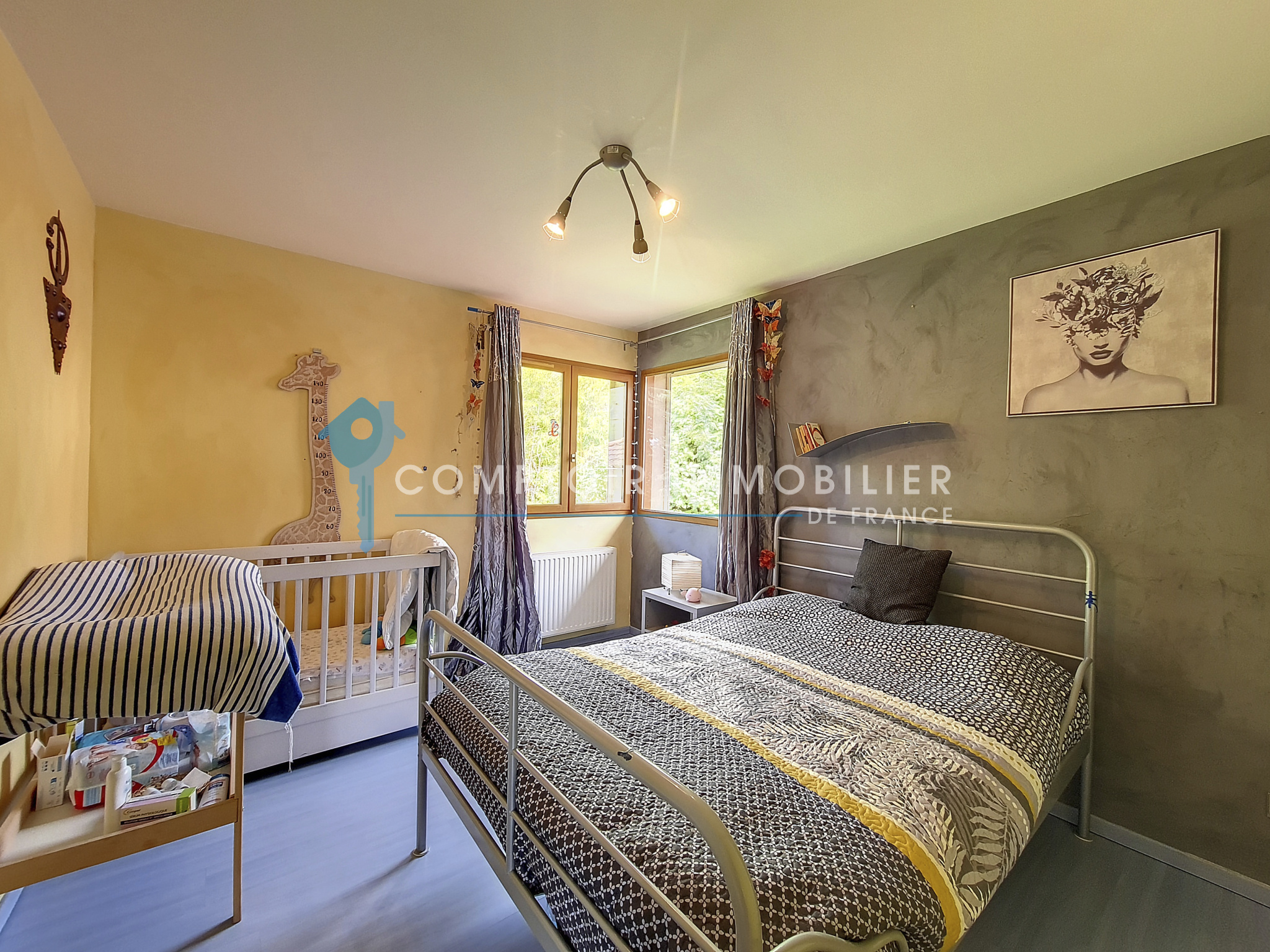 A l'étage : 3 grandes chambres de 12 à 15m2 avec de grands rangements, grande salle de bains de 7m2. Sous sol complet de 90m² avec accès par l'intérieur mais aussi par l'extérieur avec une porte sécurisée - petites fenêtres pour aération ou luminosité (possibilité de créer une chambre/ studio d'étudiant ou d'adolescent par exemple)