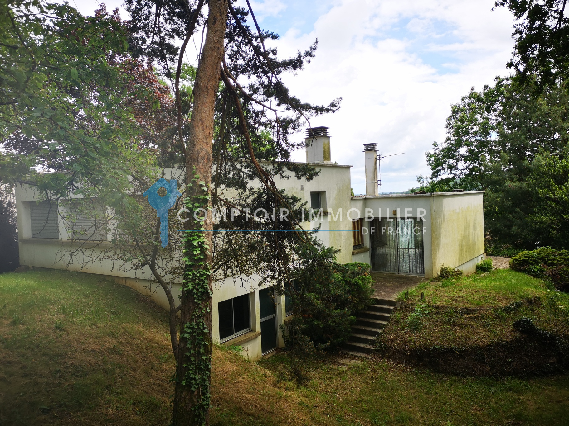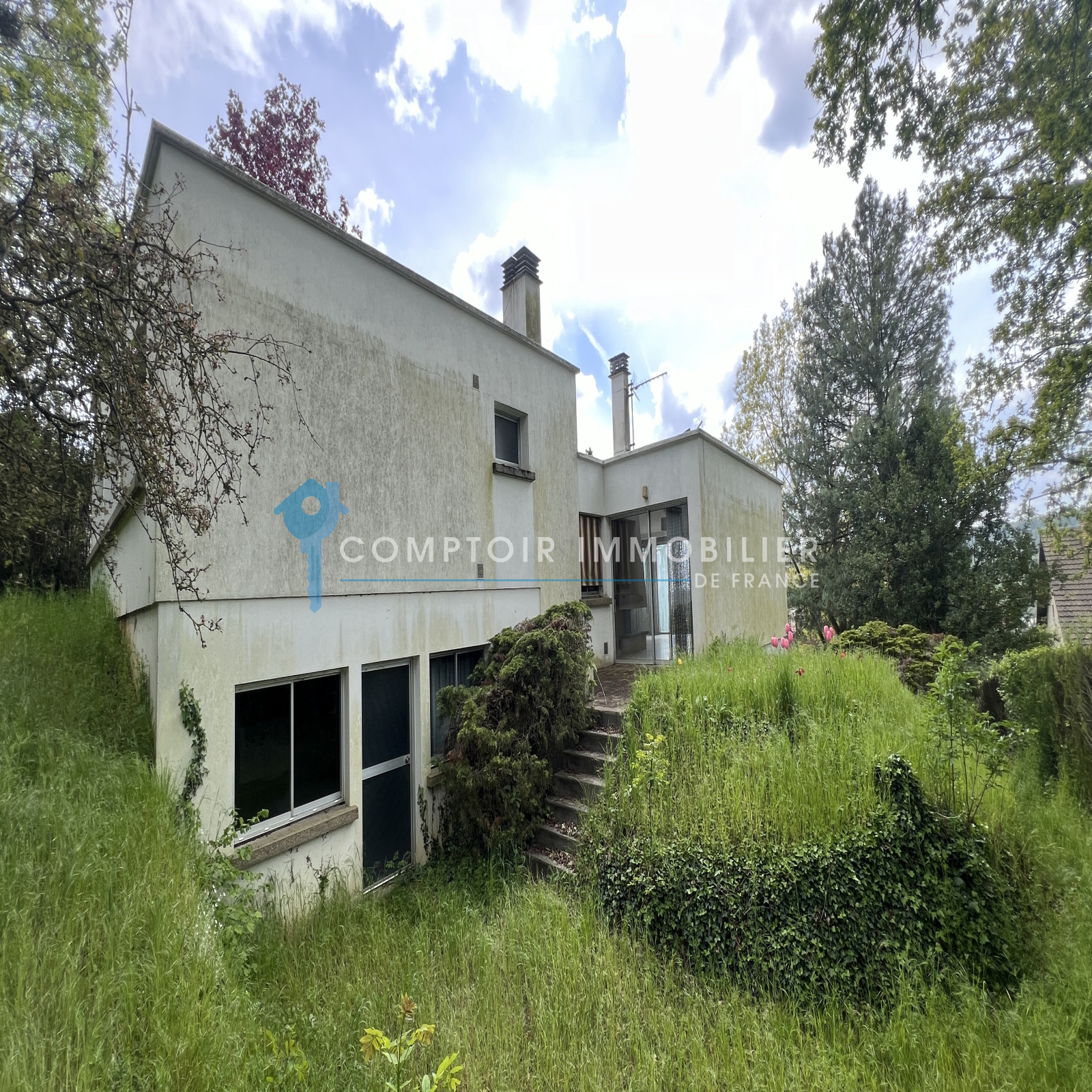 Beau Potentiel !! Nouveauté et seulement dans votre agence CIF Gatinais - Villa d'Architecte à rénover et élevée sur sous-sol total comprenant en RDC une vaste entrée (15m²), salon/salle à manger de près de 40m2 avec cheminée, cuisine aménagée (12m²) et une chambre (14m²). A l'étage 3 chambres (11,11,12m²), 2 salles de bains, 2 wc.