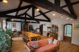 Le rez de jardin se compose d’un beau hall d'entrée de 14 m², un WC de 2,5 m², une buanderie de 5,3 m², une cuisine entièrement équipée et très bien agencée de 17 m², un salon TV de 21,2 m² avec son écran de projection, une vaste salle à manger de 50,2 m² avec sa cheminée ouverte, sa grande table pour 12 personnes et son billard, un bureau de 9,4 m² ;