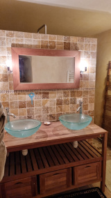 Des escaliers en bois brut mène au niveau inférieur qui se compose d’un couloir de 11,5 m², une belle suite parentale de 27,5 m² avec WC indépendant et douche à l'italienne, une chambre de 9,2 m², une salle d'eau de 3,5 m², un WC séparé de 1,3 m², une chambre avec accés extérieur de 17,1 m² et une cave voutée de 6 m².