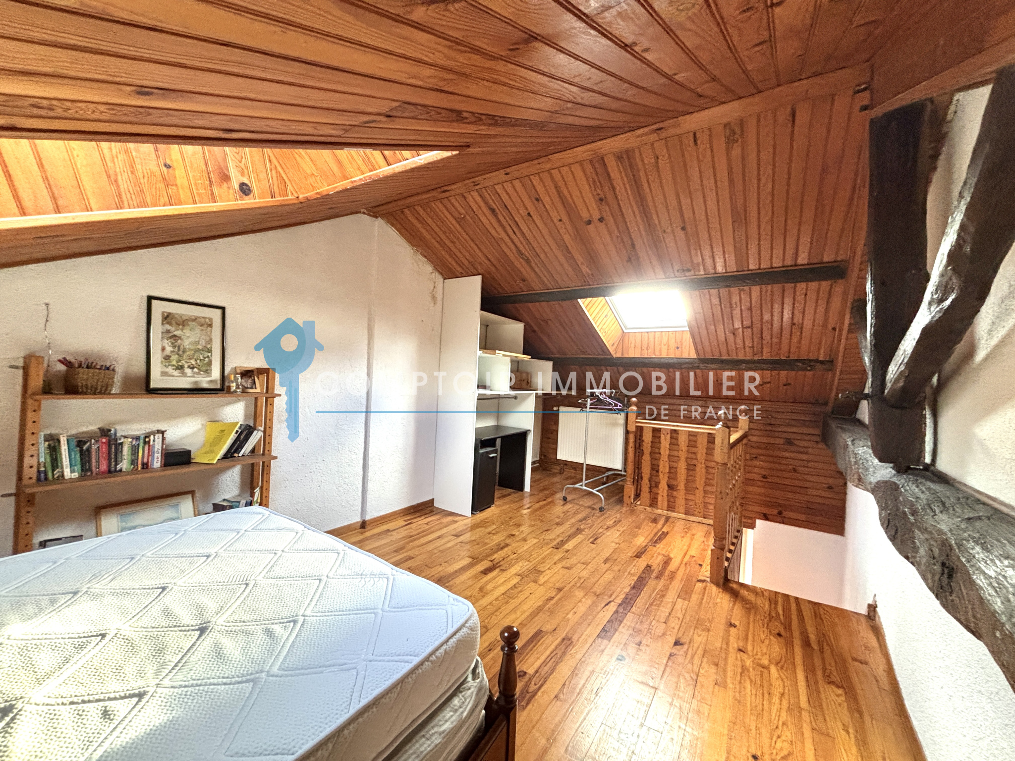 Points forts de cette maison : Au rez-de-chaussée, une grande cuisine indépendante ainsi qu'un espace séjour salle à manger très lumineux donnant accès à la terrasse, 1 buanderie chaufferie (chauffage au Gaz) puis 1er étage vous y trouvez 2 grandes chambres,1 mezzanine, 1 salle de bains, 1 Toilette indépendant, 1 espace d'environ 17m2 servant actuellement de bureau, 1 salle d'eau avec Toilette (à rénover) puis au dernier étage une grande chambre mensardé d'environ 22m2 au sol.
