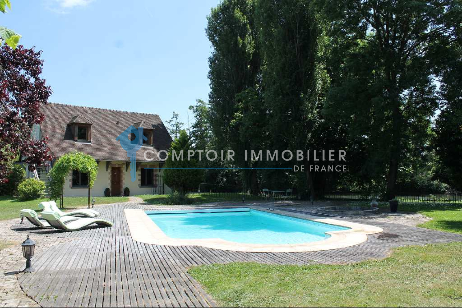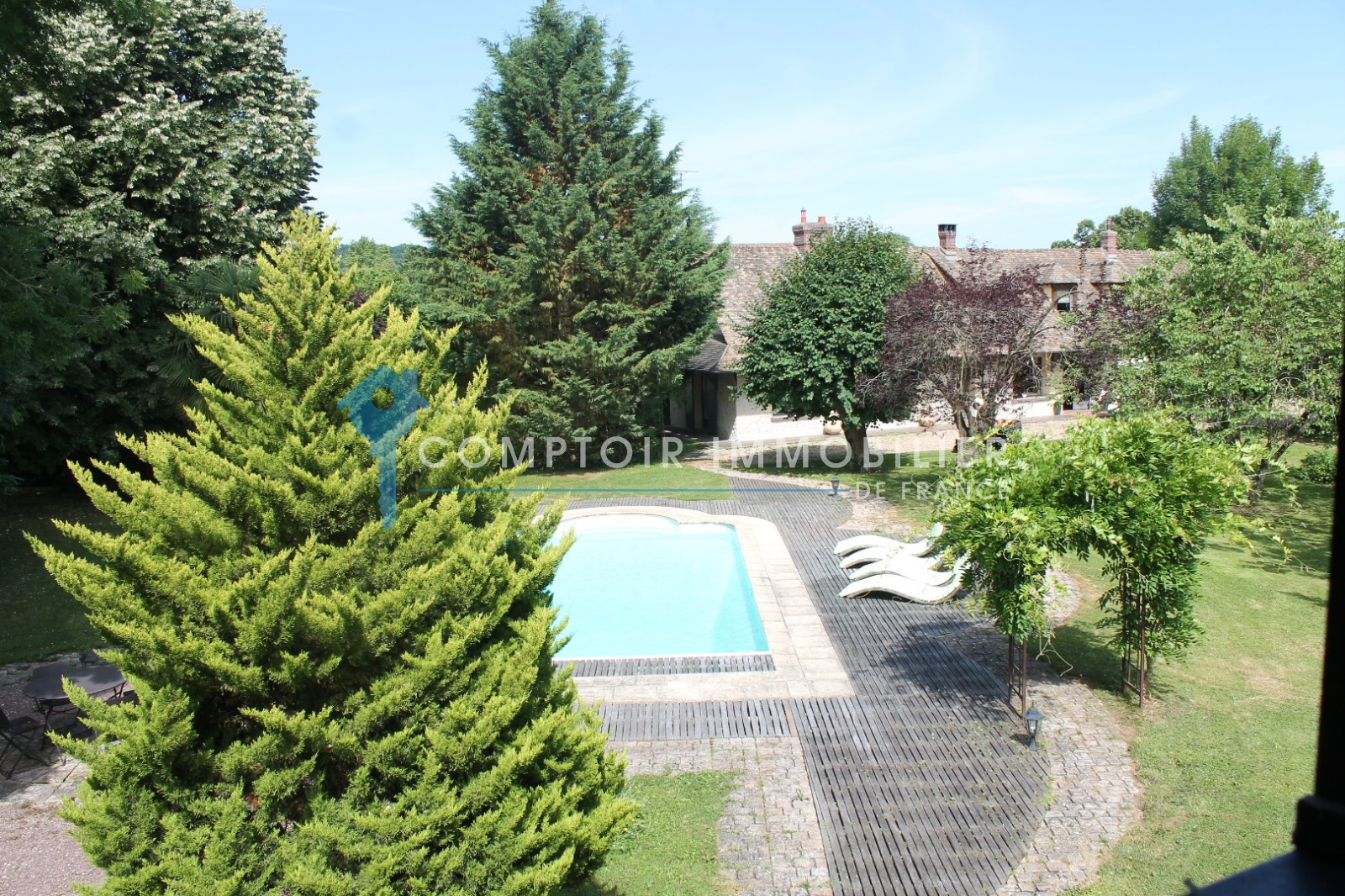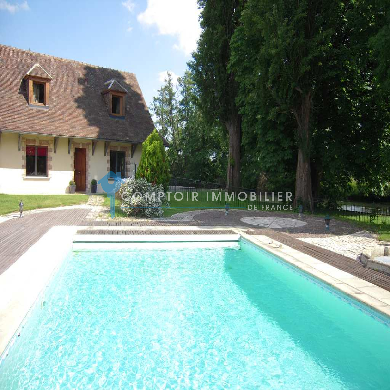 A 50 mn de Paris, dans village avec écoles et commerces à pied, proche gare SNCF en direction Paris St Lazare. Superbe propriété de charme, au calme, comprenant habitation principale et dépendance de standing, dans un environnement idyllique avec piscine chauffée, en bordure de rivière sans vis à vis. Dans l'habitation principale, vous aurez au rez de chausée, salon/salle à manger 60 m2 avec 2 cheminées, cuisine aménagée et équipée, chambre avec douche et wc privatifs donnant sur jardin, wc indépendants. A l'étage, 2 belles chambres spacieuses, dressing ou chambre, pièce palière de 18 m2, salle de bains, wc indépendants. Dépendance, vous trouverez au rez de chaussée, salon/salle à manger avec cuisine américaine de 25 m2, très belle chambre 17 m2 donnant sur rivère, salle de douches italienne, wc. A l'étage, pièce palière de 19 m2, chambre de 18 m2 vue sur rivière, salle de bains, wc. Garage. Jardin paysagé de 3570 m2, clos avec 50 m de bord de rivère. Venez vite, il est rare de trouver une propriété avec autant d'atouts. COMPTOIR IMMOBILIER DE FRANCE - Gilbert GENESTE - 06 61 19 05 67 - Marie NGUYEN - 07 77 96 31 87 - Plus d'informations sur www.cif-immo.com (réf. 5608)