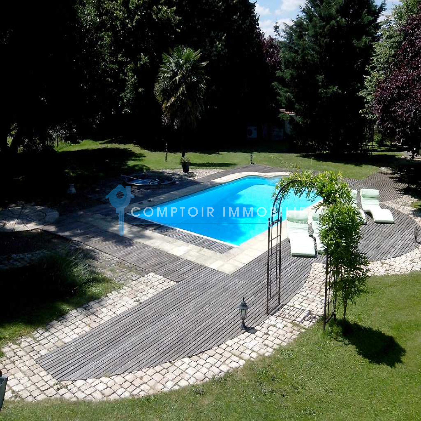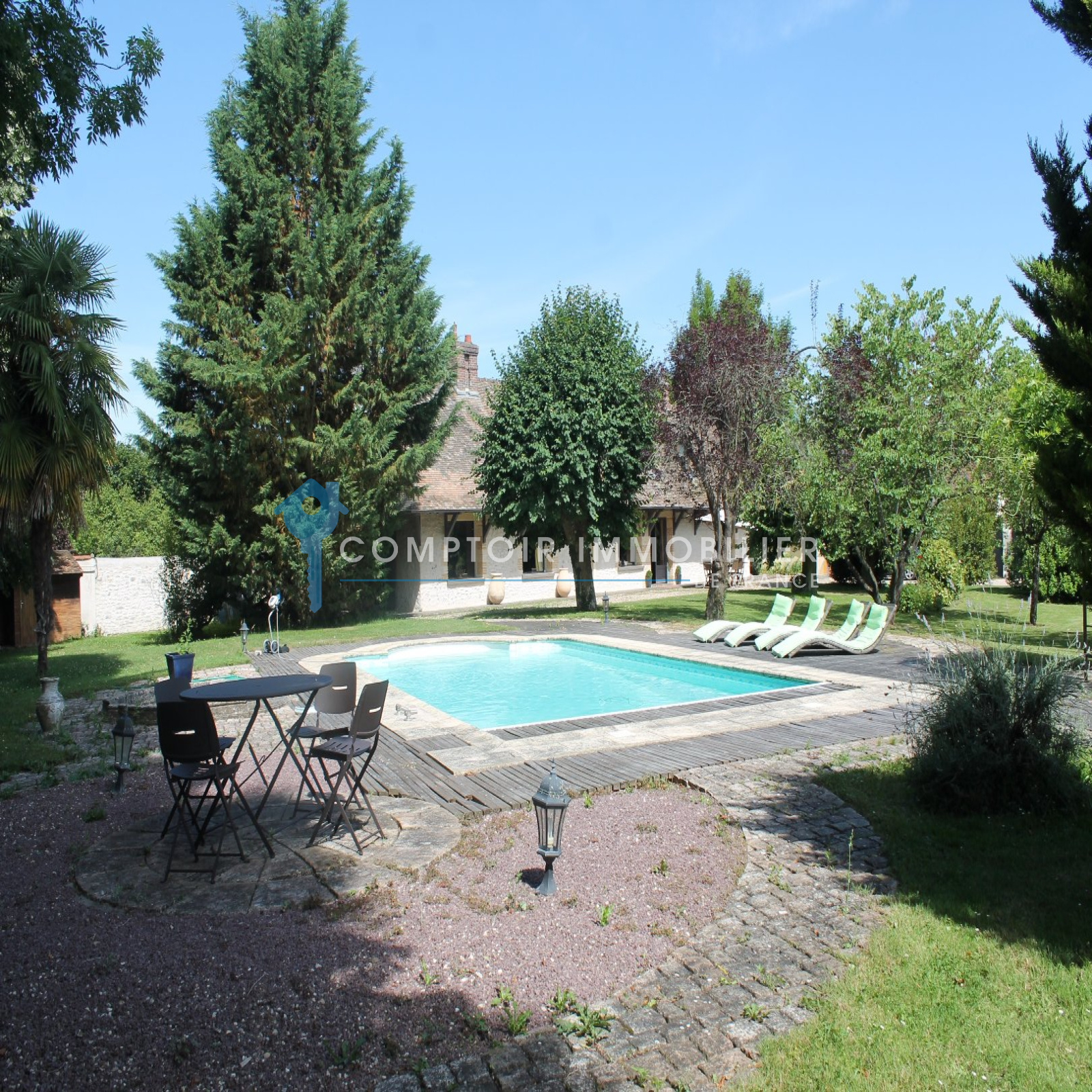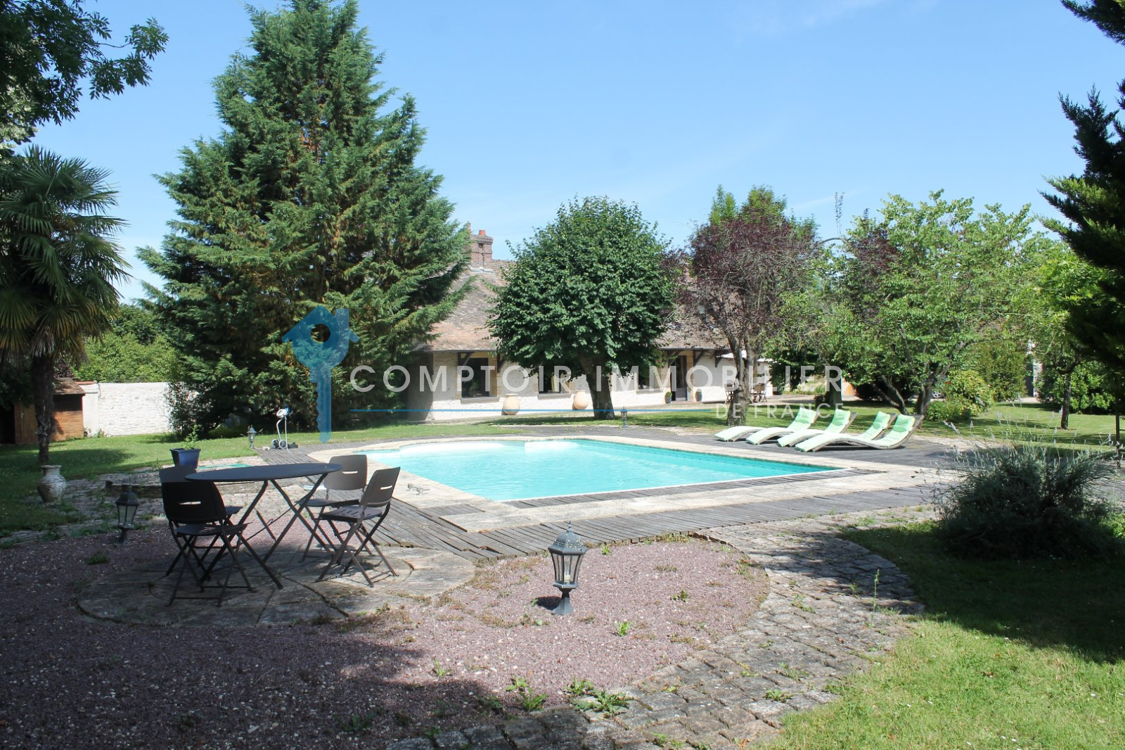 A 50 mn de Paris, dans village avec écoles et commerces à pied, proche gare SNCF en direction Paris St Lazare. Superbe propriété de charme, au calme, comprenant habitation principale et dépendance de standing, dans un environnement idyllique avec piscine chauffée, en bordure de rivière sans vis à vis. Dans l'habitation principale, vous aurez au rez de chausée, salon/salle à manger 60 m2 avec 2 cheminées, cuisine aménagée et équipée, chambre avec douche et wc privatifs donnant sur jardin, wc indépendants. A l'étage, 2 belles chambres spacieuses, dressing ou chambre, pièce palière de 18 m2, salle de bains, wc indépendants. Dépendance, vous trouverez au rez de chaussée, salon/salle à manger avec cuisine américaine de 25 m2, très belle chambre 17 m2 donnant sur rivère, salle de douches italienne, wc. A l'étage, pièce palière de 19 m2, chambre de 18 m2 vue sur rivière, salle de bains, wc. Garage. Jardin paysagé de 3570 m2, clos avec 50 m de bord de rivère. Venez vite, il est rare de trouver une propriété avec autant d'atouts. COMPTOIR IMMOBILIER DE FRANCE - Gilbert GENESTE - 06 61 19 05 67 - Marie NGUYEN - 07 77 96 31 87 - Plus d'informations sur www.cif-immo.com (réf. 5608)
