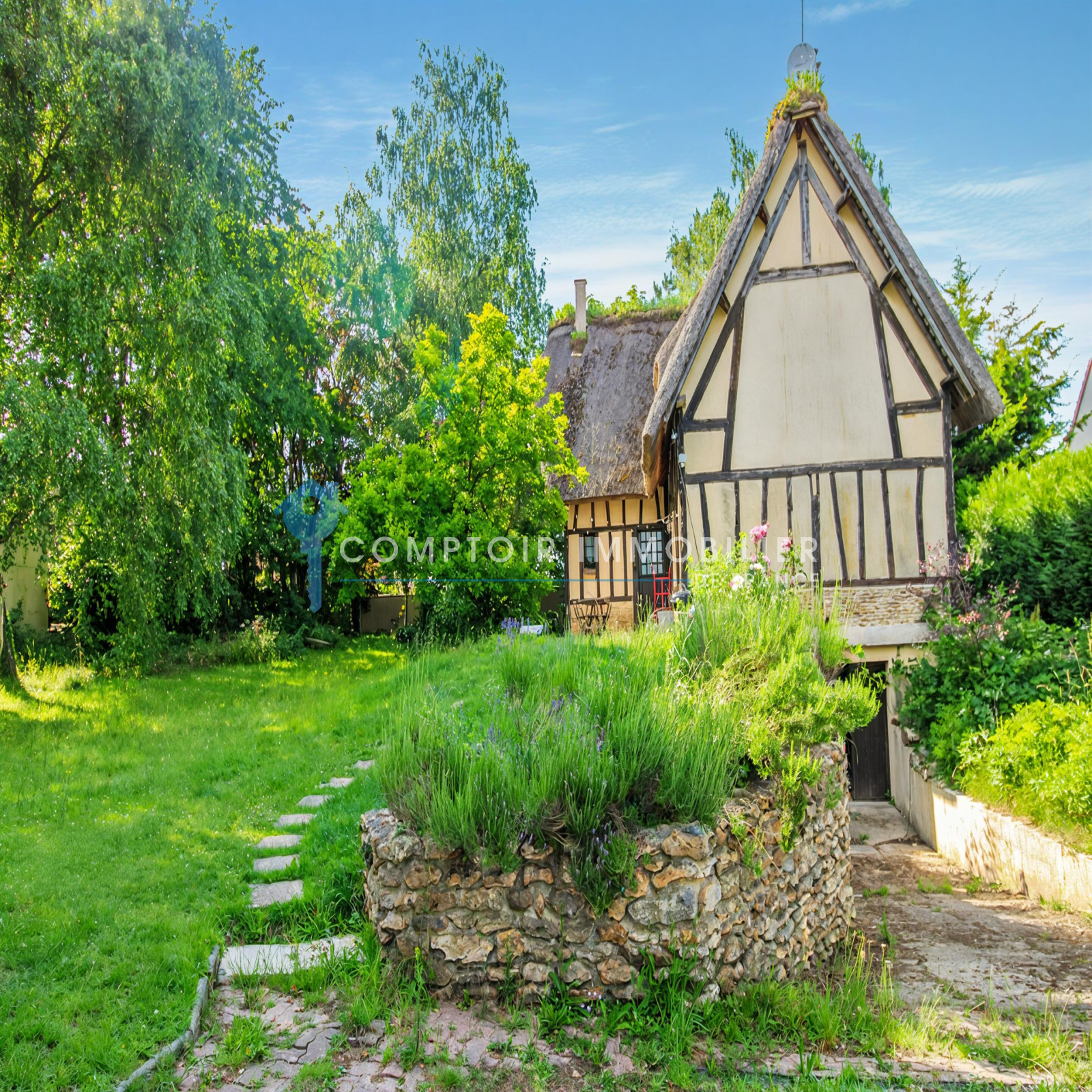 Proche Pacy sur Eure, belle chaumière disposant salon/salle à manger, cuisine aménagée et équipée, chambre, wc. A l'étage, mezzanine, 2 chambres, salle de bains avec douche et wc. Garage au sous sol total. Le tout sur terrain de 1 615 m2.