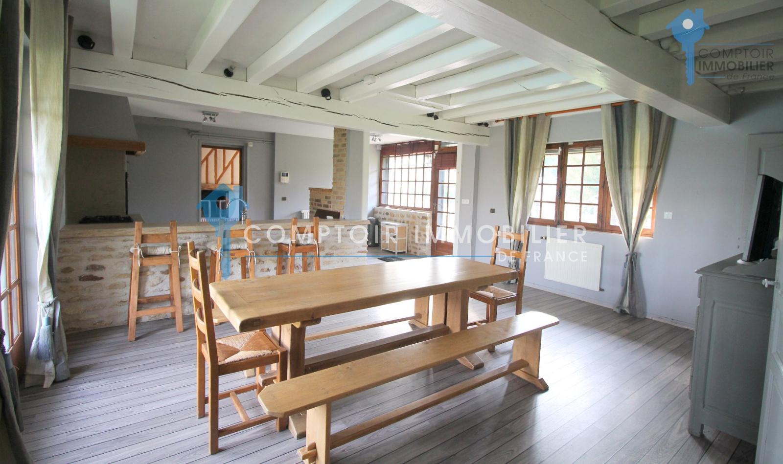 Proche Pacy sur Eure, belle chaumière au calme et sans vis à vis, elle dispose d'un salon spacieux avec vue sur la campagne et ouvert sur jardin, cuisine dinatoire de 45 m2 environ ouverte sur jardin et piscine, chambre, salle de bains, wc. A l'étage, pièce palière desservant 2 chambres dont 1 avec point d'eau et wc, l'autre avec un 2ème accès vers l'extérieur, salle de bains avec wc, dressing, 3ème chambre de l'étage avec salle de bains, wc et accès indépendant. Dépendance : cuisine aménagée ouverte sur salon/salle à manger, chambre, salle de douches avec wc, abri de jardin, piscine. Le tout sur jardin arboré de 5000 m2 environ. Honoraires charge vendeur COMPTOIR IMMOBILIER DE NORMANDIE - Gilbert GENESTE - 06 61 19 05 67 - Marie NGUYEN - 07 77 96 31 87 - Plus d'informations sur www.cif-immo.com (réf. 11039)