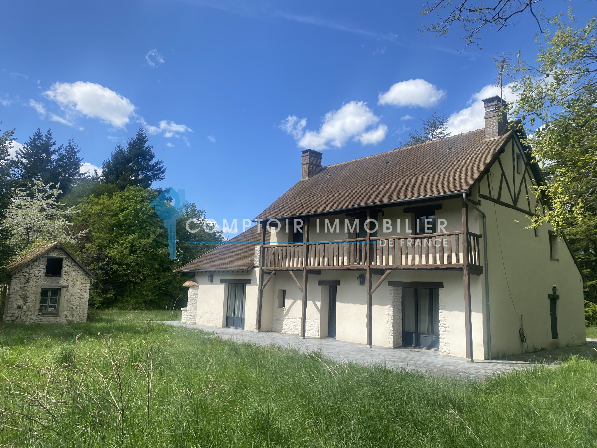 Située dans un environnement bucolique, à seulement 5 minutes des commerces, des écoles et de la gare sncf (direction Paris Saint-Lazare en 45 minutes), cette magnifique maison ancienne rénovée vous séduira par son charme, ses volumes et sa tranquillité. Au coeur d'un cadre verdoyant, sans vis à vis et à deux pas des bois, cette demeure de caractère offre, une spacieuse entrée accueillant, un salon chaleureux avec cheminée, une salle à manger lumineuse ouverte sur jardin, une grande cuisine conviviale d'environ 22 m2, chambre, 2 wc. A l'étage, un couloir distribue, 4 belles chambres, dont 1 d'environ 19 m2, 1 salle de bains avec douche, wc indépendant. Grenier. Cave. Charreterie pour 2 véhicules. Atelier. Bûcher. Abri de jardin. Le tout sur terrain de 4 037 m2. Parfait pour les amoureux de nature et de calme.