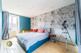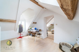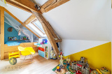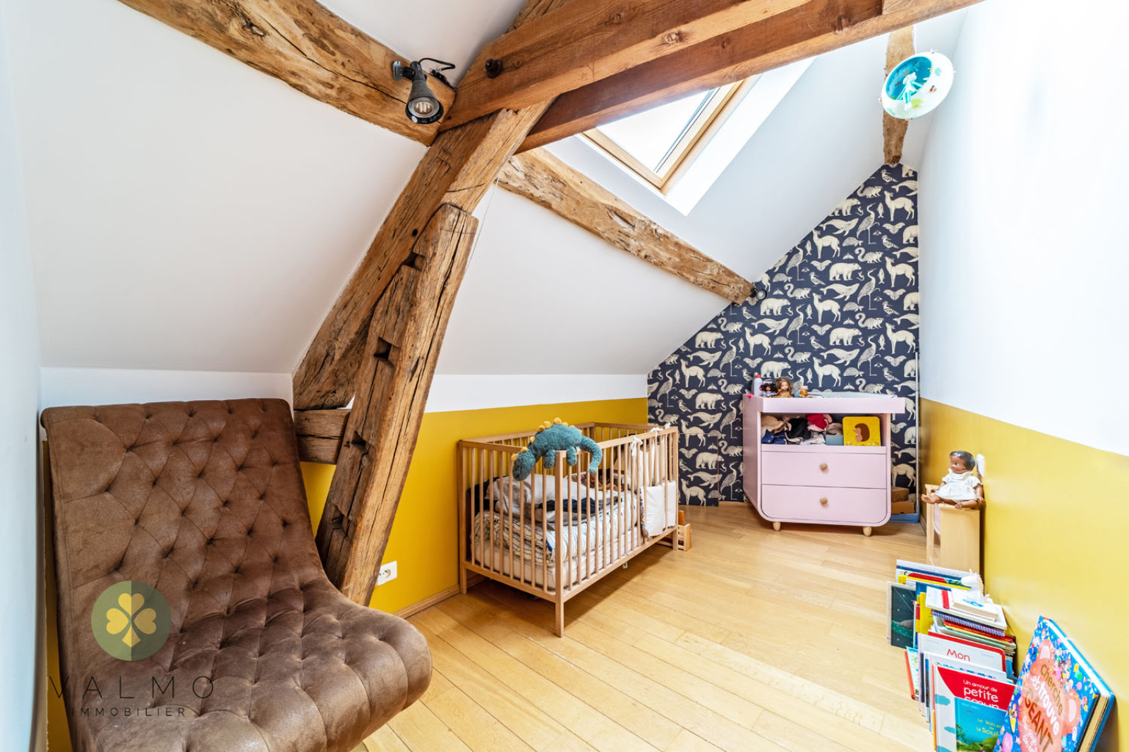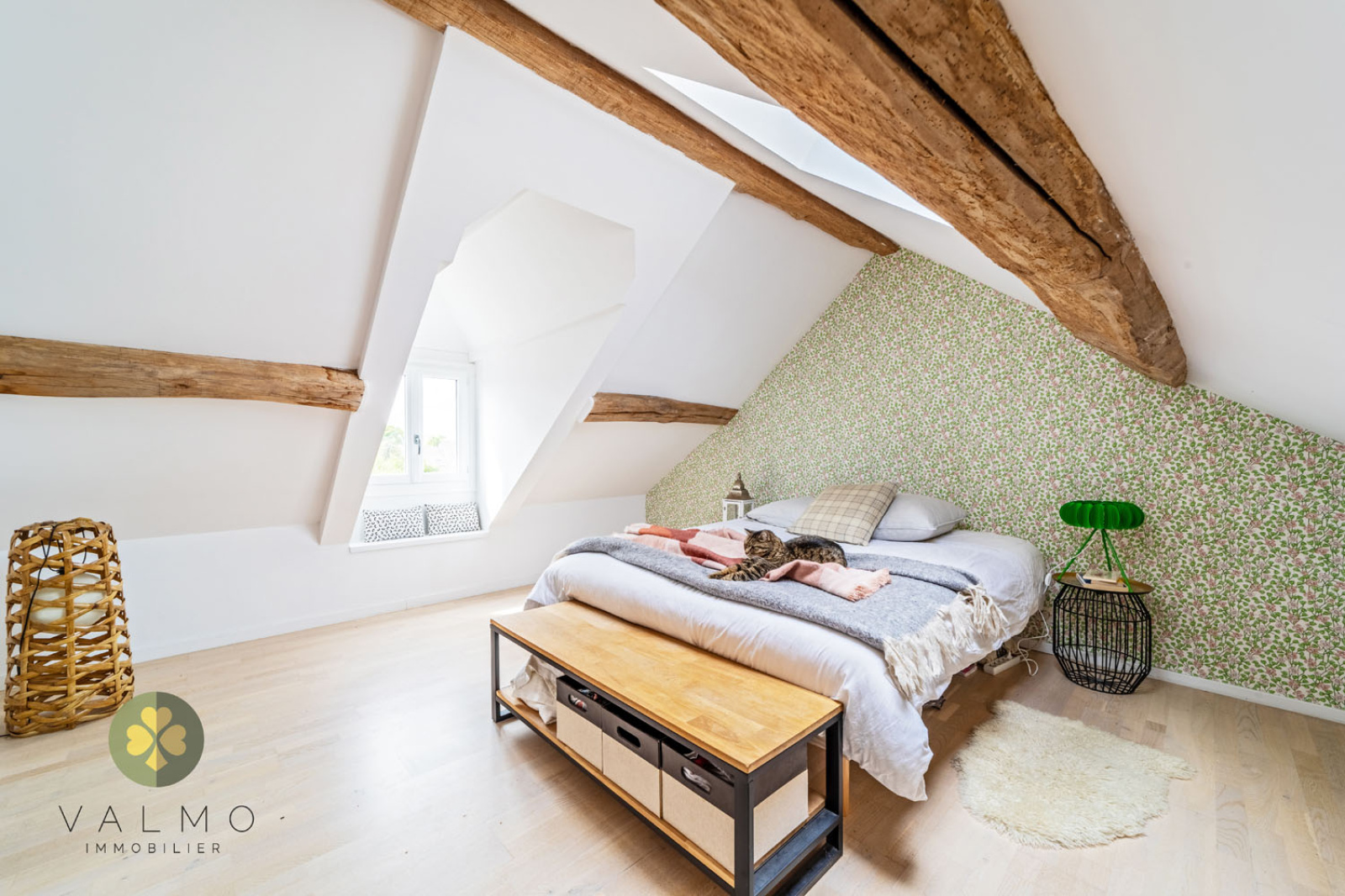 Les combles ont été aménagés en une spacieuse chambre avec espace bureau.