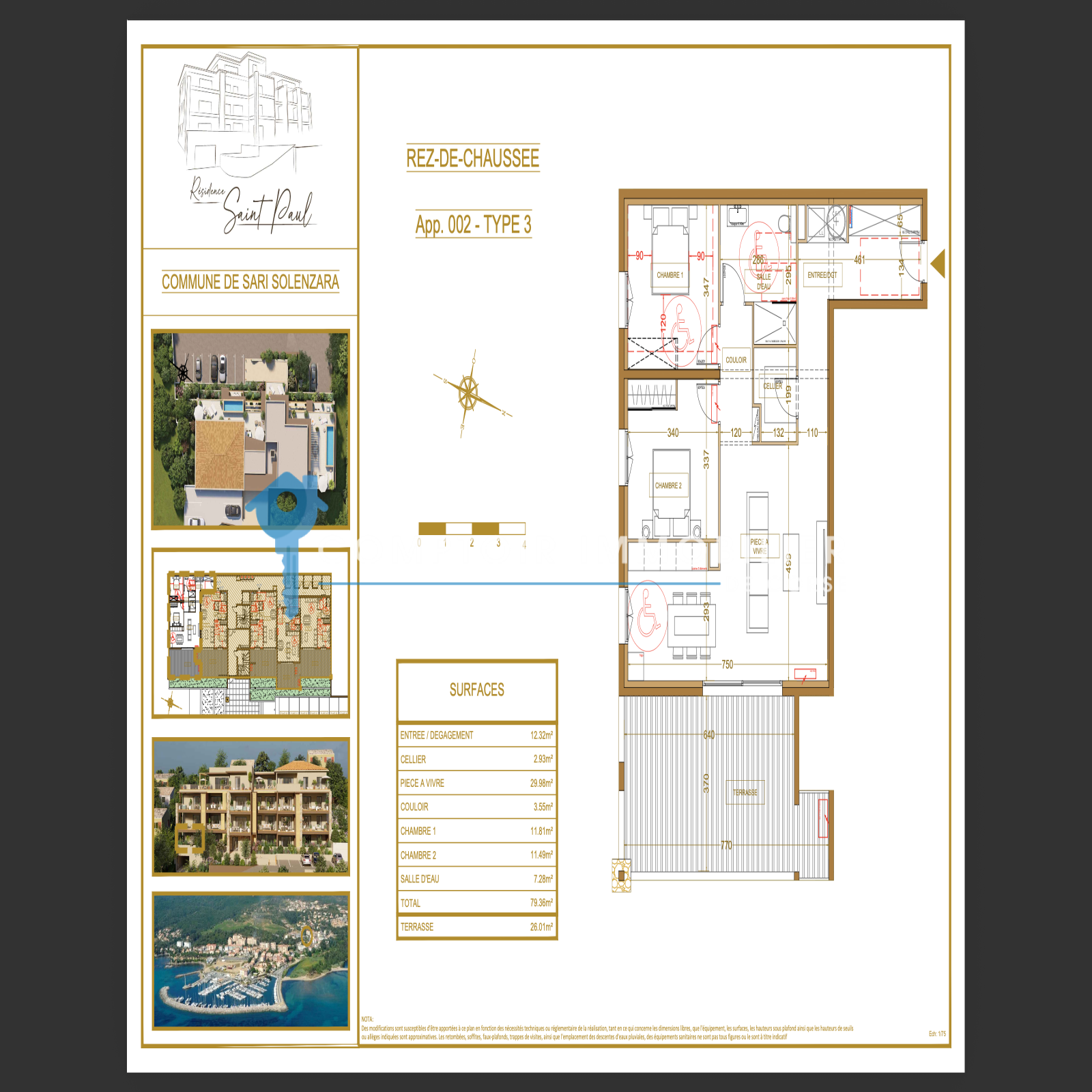 L'espace nuit comprend deux grandes chambres avec placartds et une salle d'eau avec WC. Vous profiterez également d'une terrasse ensoleillée de 26 m2, idéale pour vos moments de détente. Plusieurs appartements du même type sont également disponibles, ainsi que d'autres surfaces avec vue mer, offrant un cadre de vie privilégié.
