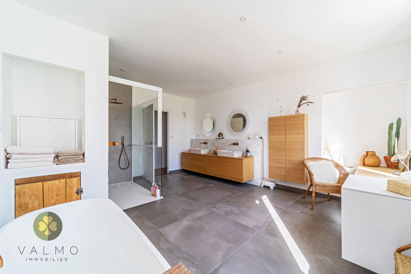 A l'étage, un bureau, 3 chambres, un dressing, un WC, une salle de douche et un grenier aménageable de 40 m².