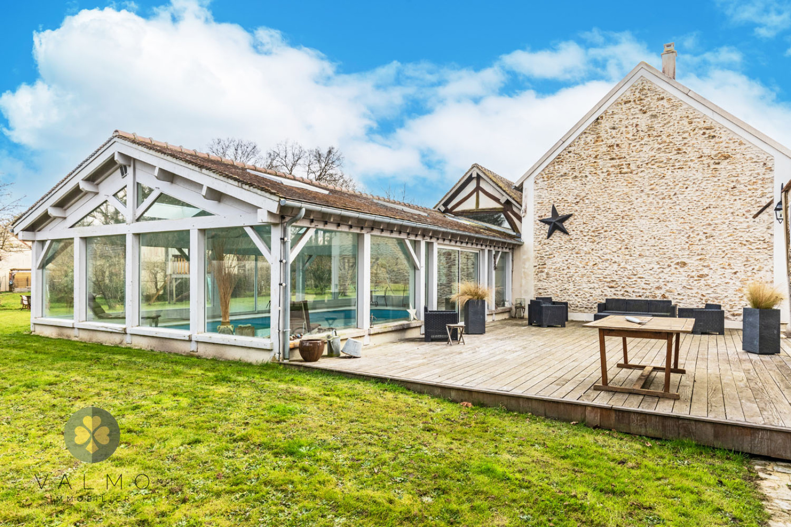 EN EXCLUSIVITE VALMO IMMOBILIER, sur la commune de Condé-sur-Vesgre, magnifique maison de 270 m² avec une grange, une piscine couverte, un pool house et son terrain de 2200 m².