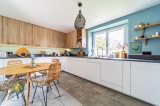Ce bien en parfait état est composé, d'une salle à manger en cathédrale, un salon avec insert, une cuisine indépendante, une buanderie, deux WC, deux chambres, un dressing et une salle de bains.