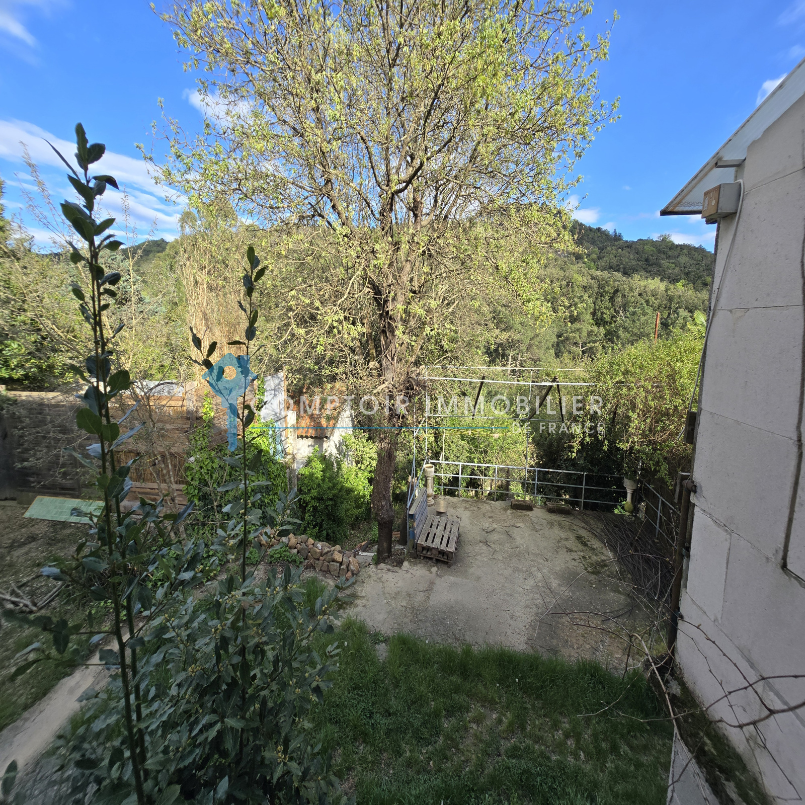 Le jardin descend doucement jusqu’à la rivière, un cadre naturel rare et reposant. Deux places de stationnement sont disponibles devant la maison.