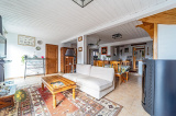 Au fil des années, la maison a été repensée, agrandie et modernisée, offrant aujourd’hui un espace de vie fonctionnel et chaleureux, parfaitement adapté à la vie de famille. Dès l’entrée, vous accédez à une cuisine entièrement aménagée et équipée, organisée autour d’un espace bar convivial et semi-ouverte sur le séjour lumineux exposé plein sud.