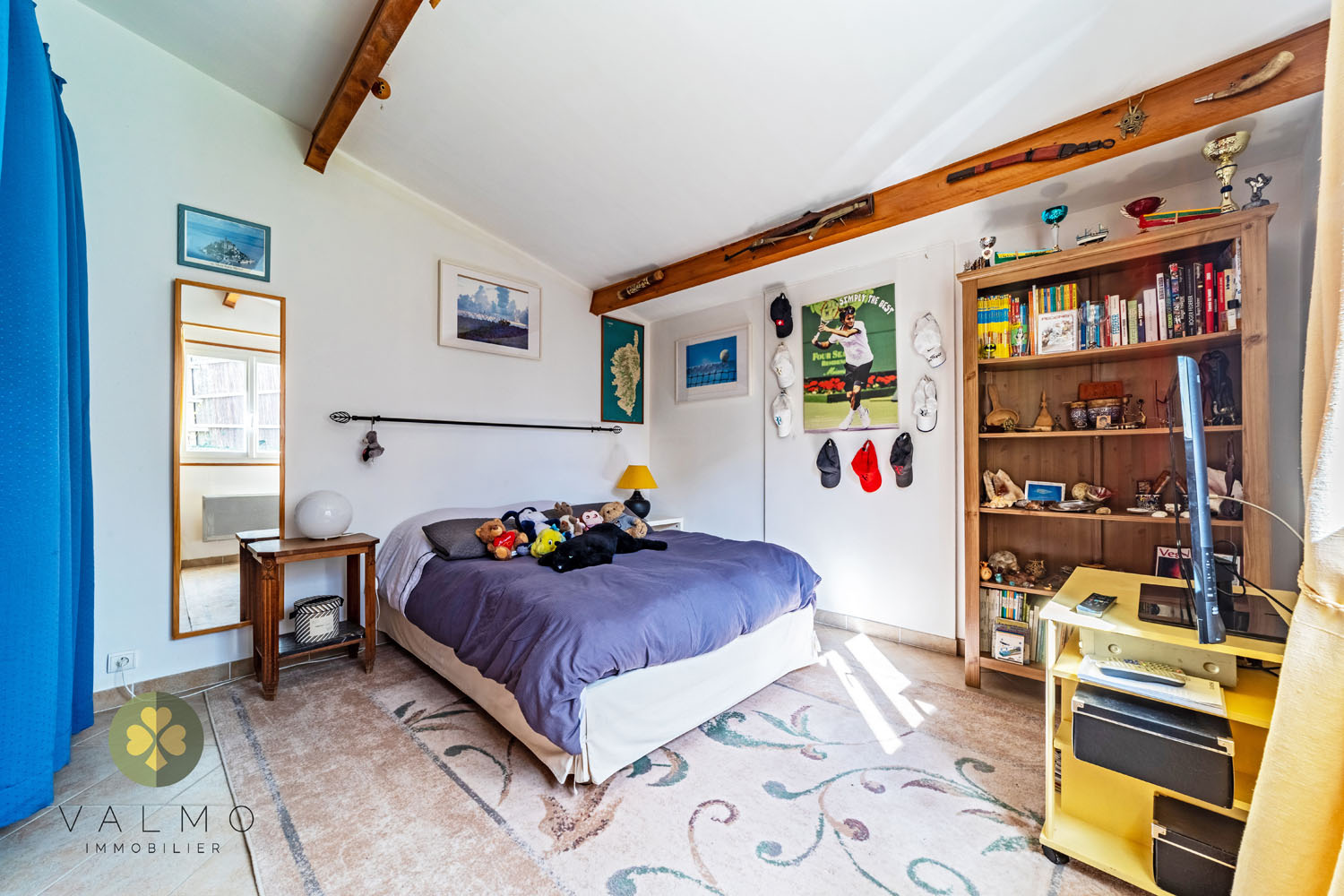 Le rez-de-chaussée accueille deux chambres confortables de 14 m² et 9 m². Quelques marches mènent à une suite parentale, offrant un espace nuit intime avec sa salle de bain privative.
