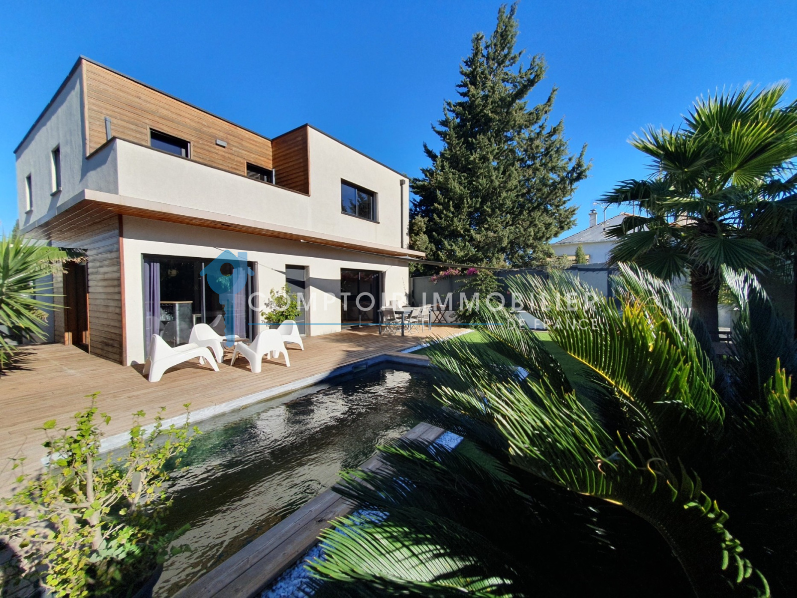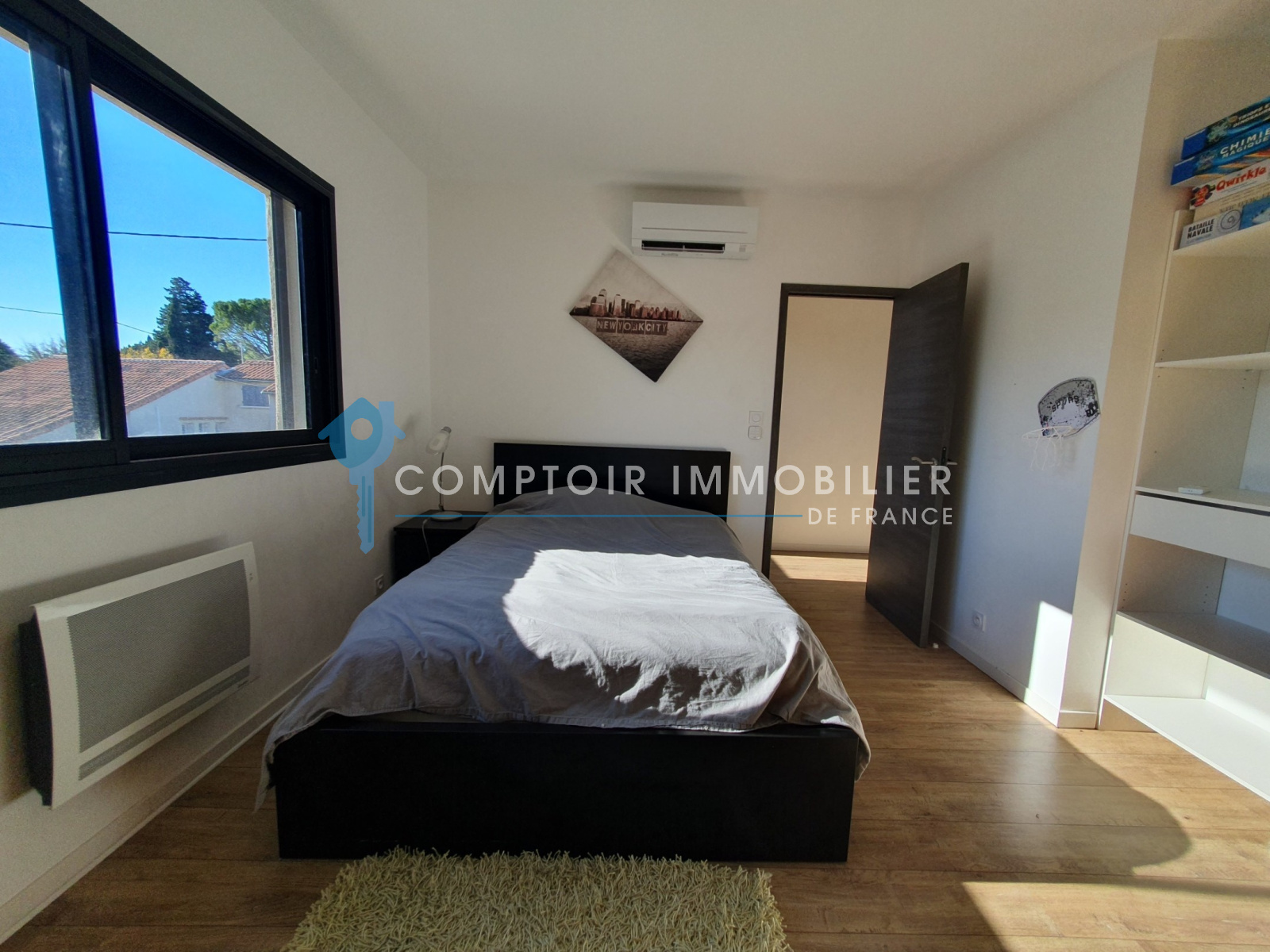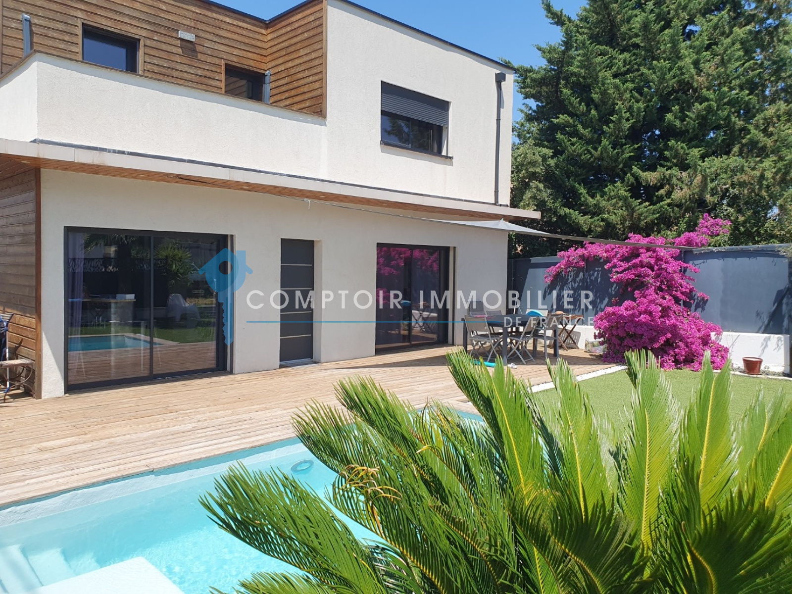 LES ANGLES (GRAND AVIGNON) : Villa d'architecte moderne avec piscine dans un cadre paisible Découvrez cette jolie villa d'architecte récente, idéalement située sur 400 m2 de terrain dans un quartier très calme des Angles. Cette propriété de deux niveaux offre des prestations de qualité et un confort de vie exceptionnel. Caractéristiques principales : 4 chambres dont une suite parentale au rez-de-chaussée avec salle d'eau privative. Une pièce à vivre de 55 m2 lumineuse avec une cuisine équipée neuve et un poêle à granules, parfaite pour des moments conviviaux. Climatisation réversible par pompe à chaleur et chauffe-eau thermodynamique pour un confort optimal toute l'année. Deux terrasses : une confortable terrasse exposée plein sud au rez de chaussée devant la piscine et une seconde à l'étage, idéales pour profiter du bel ensoleillement de cette maison. À l'étage, une salle de bains moderne avec WC indépendant, et un WC avec lave-mains au rez-de-chaussée. Atouts supplémentaires : Un garage spacieux pour le rangement et plusieurs emplacements de stationnement sécurisés. Une excellente performance énergétique A, pas de vis-à-vis et une tranquillité garantie. Proximité immédiate de toutes les commodités : le centre d'Avignon desservi par une ligne de bus à 200 mètres et la gare TGV sont à moins de 10 minutes, l'autoroute A9 à 15 minutes, facilitant l'accès à Montpellier et la mer Méditerranée et, au Nord, à l'autoroute A7. Cette villa moderne est une opportunité rare, alliant confort, modernité et emplacement stratégique.
