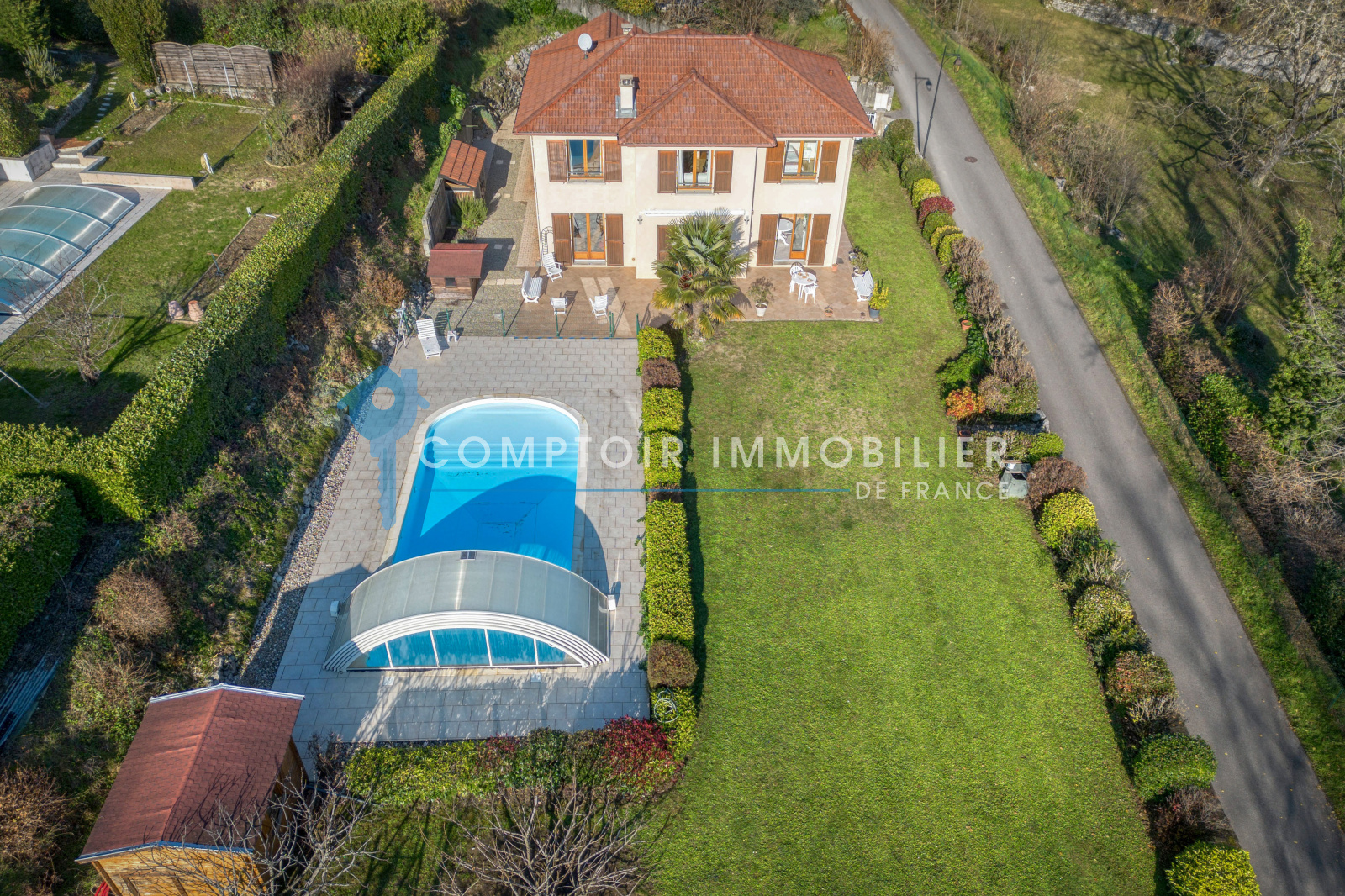 Construite sur 2 niveaux pour une superficie de 195m² habitables, lumineuse par son exposition Sud-Ouest et ses grands ouvrants, elle offre de beaux volumes, le tout sur un terrain clos d'environ 2000m² comprenant un garage communicant de 60m² + mezzanine, une cave, plusieurs places de stationnement et une piscine couverte de 12,5X5.