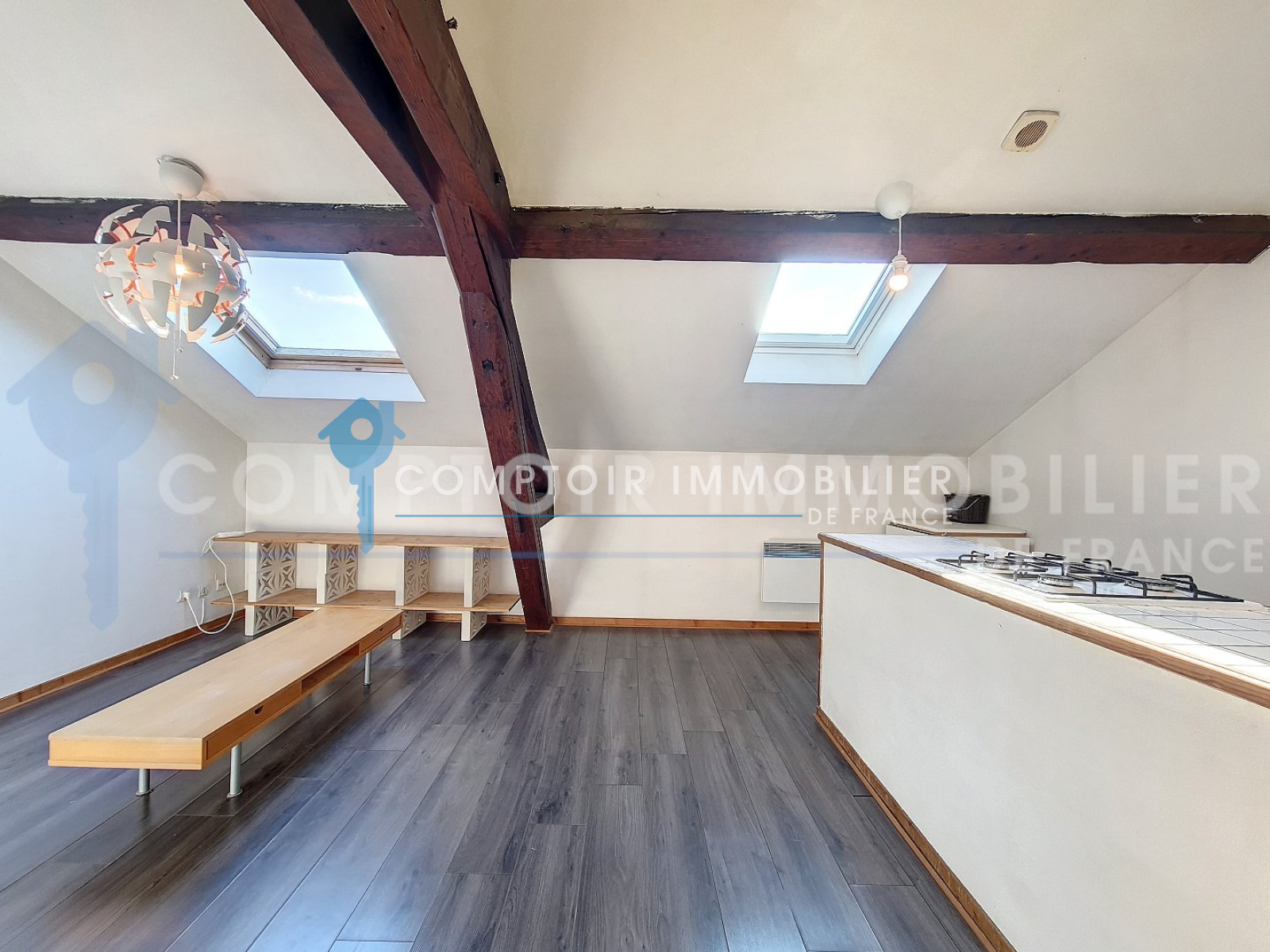En exclusivité chez Comptoir Immobilier de France Grenoble-Grésivaudan: Situé au 112 Rue d'Alembert à Grenoble 38000, proche de toutes les commodités (Tram C à 2min, Tram A et B à 5min, bus à 30m et gare à 10min à pied), à deux pas de l'animation des rues piétonnes sans en avoir les inconvénients ! Dans un petit immeuble des années 1900, au troisième et dernier étage sans ascenseur, accès sécurisé et comprenant une cave. Venez découvrir ce lumineux T2 fonctionnel et atypique d'une superficie au sol d'environ 32m² et de 23m² Carrez. Il se compose d'une cuisine ouverte sur le séjour totalisant environ 20m² au sol, d'un hall d'entrée avec rangements, d'une salle de bain avec wc et d'une chambre d'environ 8m² au sol. Pas de fenêtres mais nombreux puits de lumière grâce aux vélux. Le DPE peut être facilement amélioré en changeant les anciens radiateurs électriques en convecteurs nouvelle génération. Rafraichissement à prévoir. Idéal premier logement ou investisseurs ! Vendu LIBRE / Charges de copropriété : 480€ / an CIF GRENOBLE GRESIVAUDAN - Titouan NICOLAS - 06 67 58 83 30 - EI Agent commercial RSAC N° 889 187 969 - Ville du greffe : GRENOBLE - Plus d'informations sur cif-grenoble-gresivaudan.com (réf. 15125) Honoraires charge vendeur