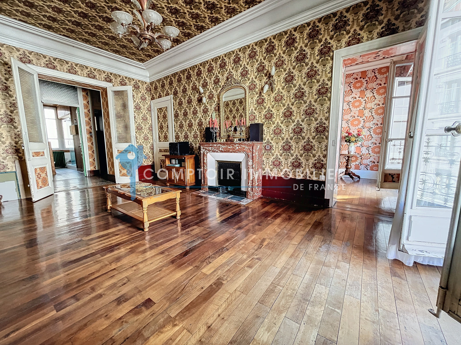 Les cheminées et le parquet d'époque, ajoutent une touche d'authenticité et de caractère à chaque pièce, tandis que la belle hauteur sous plafond crée une sensation d'espace et de grandeur.