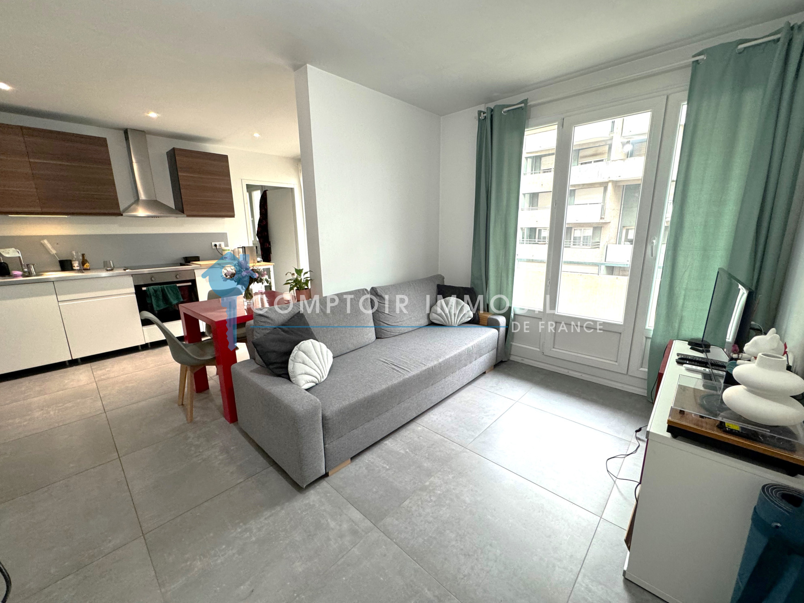 Il se compose d'une grande pièce à vivre lumineuse, d'une cuisine moderne équipée ouverte, d'une chambre spacieuse, d'une SDB élégante et WC séparé. Il bénéficie également d'un beau balcon filant permettant d'y aménager une petite table et chaise pour s'aéerer. Le tout a été rénové avec des matériaux de qualité, offrant un cadre de vie confortable et contemporain. Cet appartement bénéficie de belles prestations intérieures (menuiseries double vitrage PVC, carrelage 80x80, faux plafond avec spots..), aucun travaux n'est à prévoir !