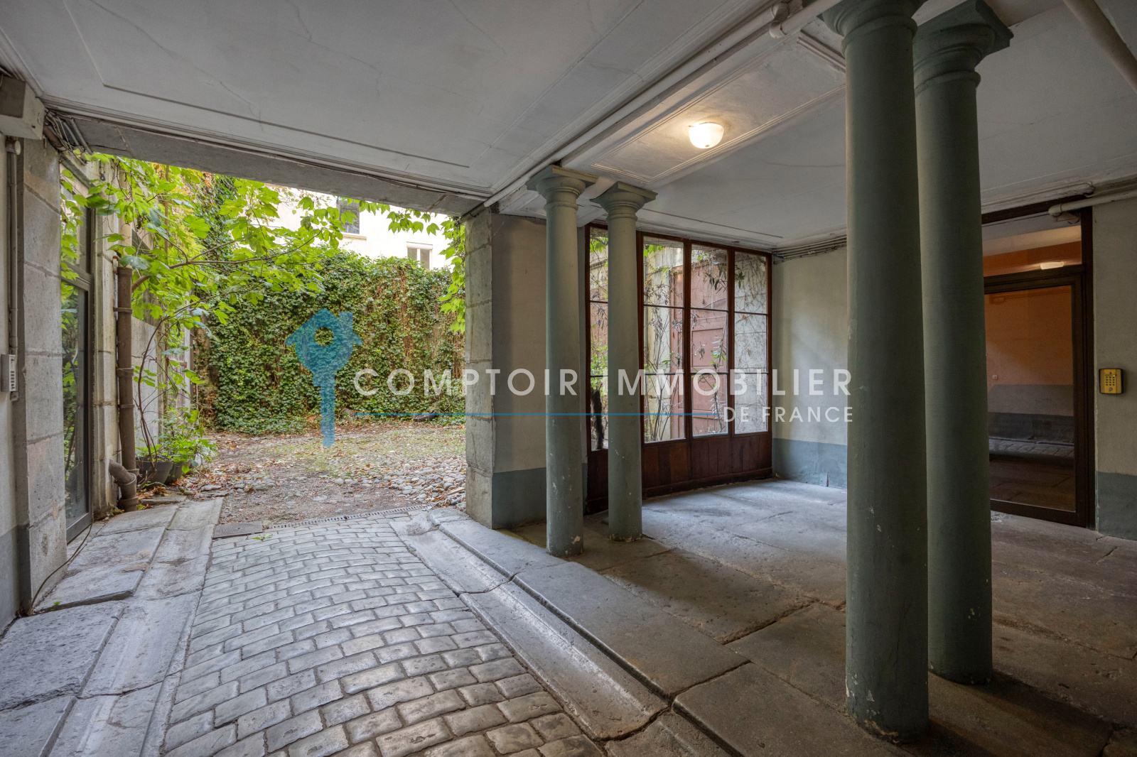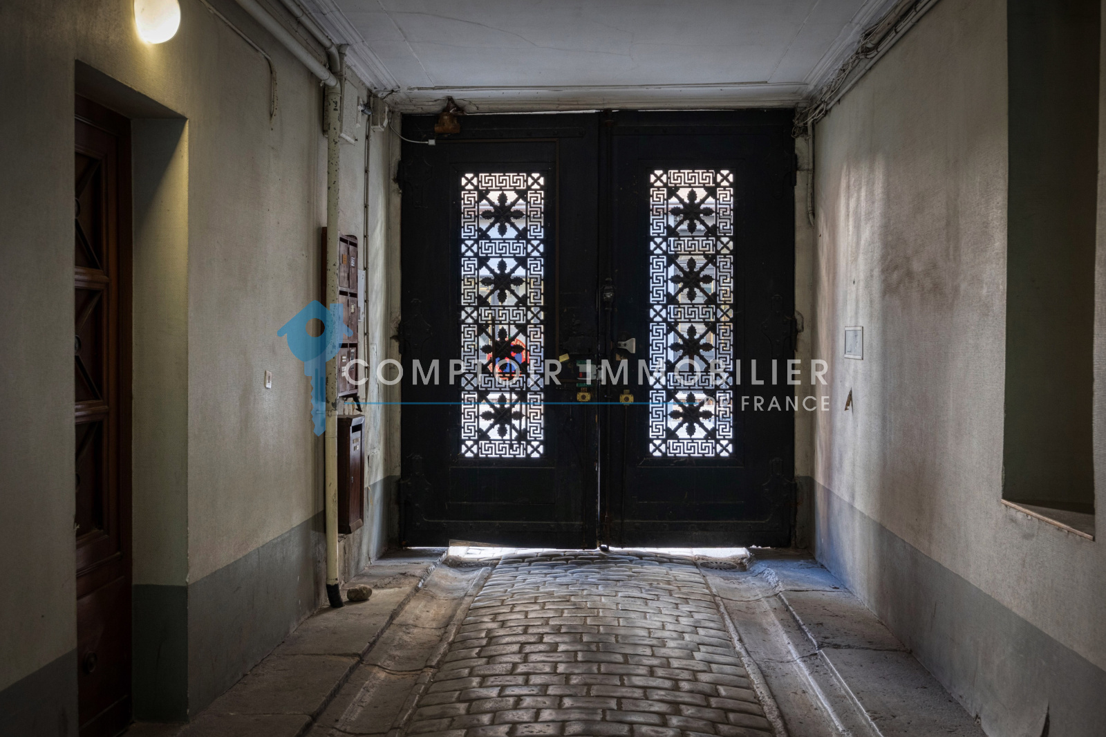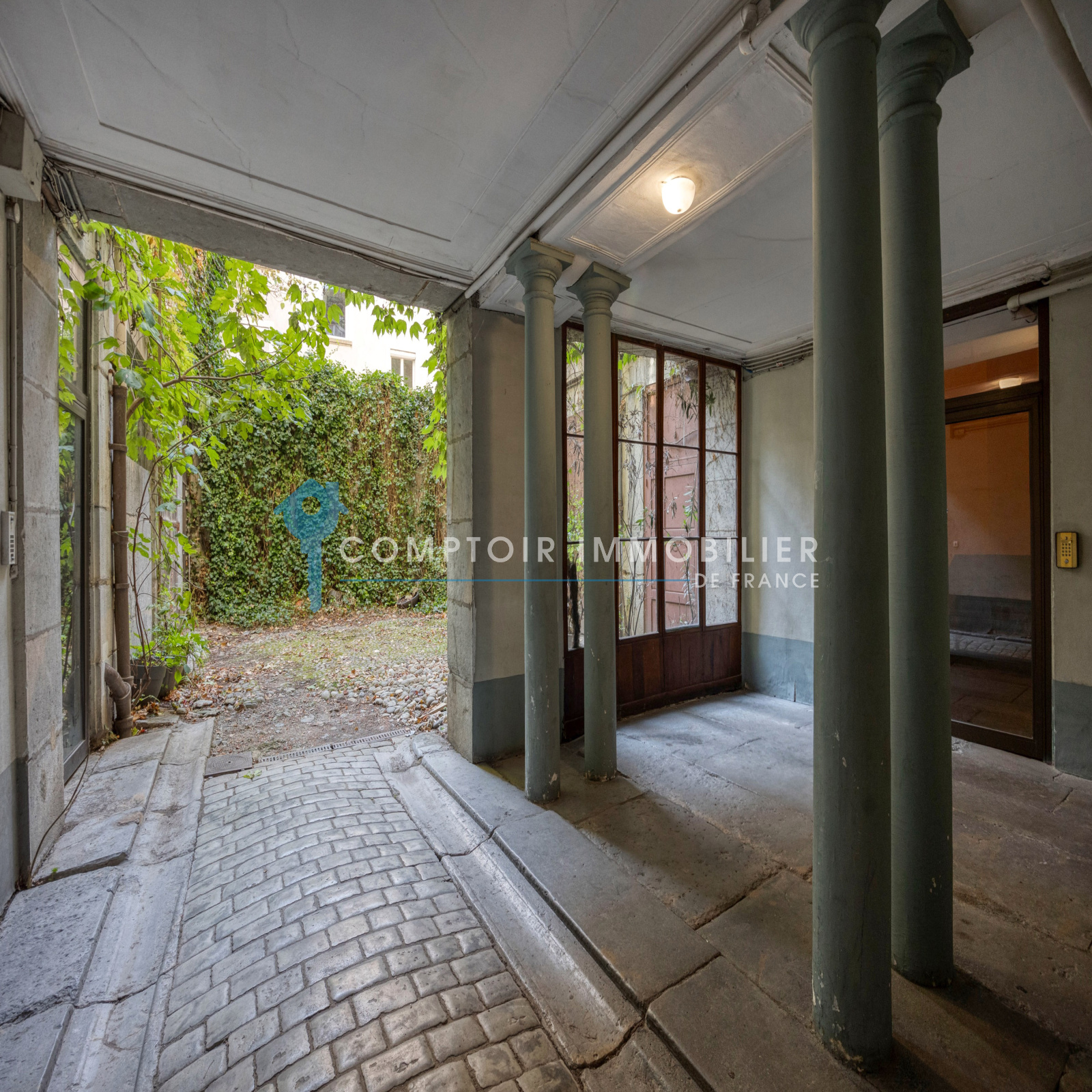Dès votre arrivée, un portail vous invite à découvrir une cour intérieure, offrant un aperçu du charme authentique de cette résidence pleine de caractère.
