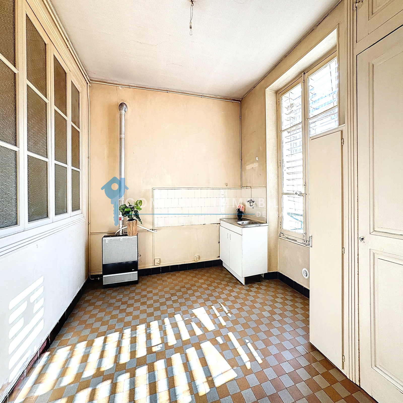 Au calme d'une rue peu passante, cet appartement vous offrira un cadre de vie reposant tout en étant à proximité immédiate de toutes commodités. Au 3ème étage d'un petit immeublé sécurisé, l'appartement se compose d'une belle entrée, d'une pièce à vivre avec coin cuisine, d'une chambre, d'un bureau et d'une SDB avec WC. Travaux à prévoir offrant de belles possibilités d'aménagement pour le transformer facilement en T2.