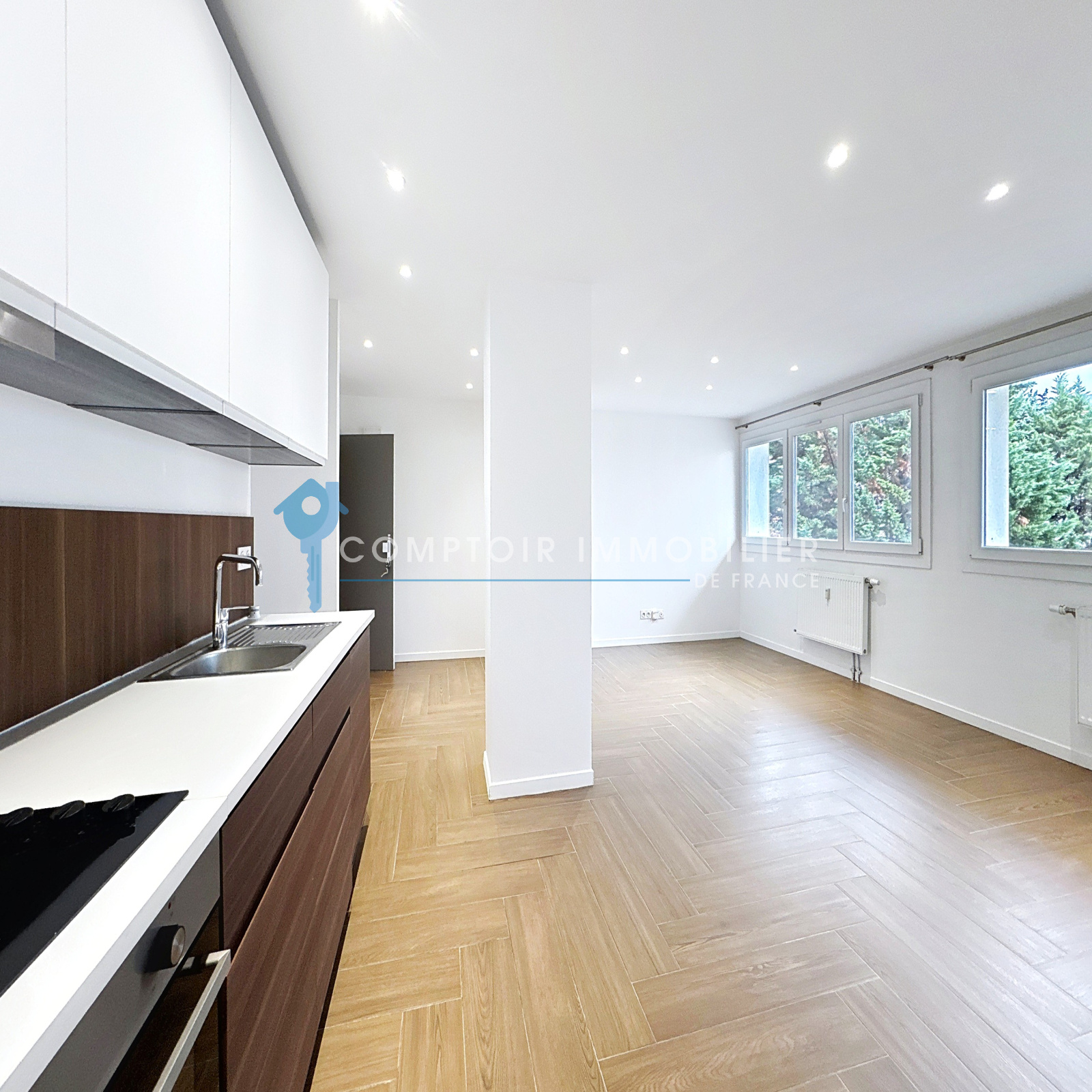 Il se compose d'une grande pièce à vivre lumineuse de 35m² donnant sur la cour calme et arborée avec une cuisine moderne équipée ouverte, d'une chambre spacieuse, d'une salle de bain élégante avec grand dressing aménagé et WC séparé. Le tout a été rénové avec des matériaux de qualité, offrant un cadre de vie confortable et contemporain. Cet appartement bénéficie de belles prestations intérieures (menuiseries double vitrage PVC, carrelage , faux plafond avec spots..), aucun travaux n'est à prévoir ! Idéalement situé à un emplacement central de Grenoble, à proximité immédiate des transports en commun, Caserne de Bonne, hypercentre de Grenoble, Tram... Cet appartement est proposé à un prix de 135 000€. Contactez Claudia SCHIAVONE du Comptoir Immobilier de France au O6 77 71 12 03.