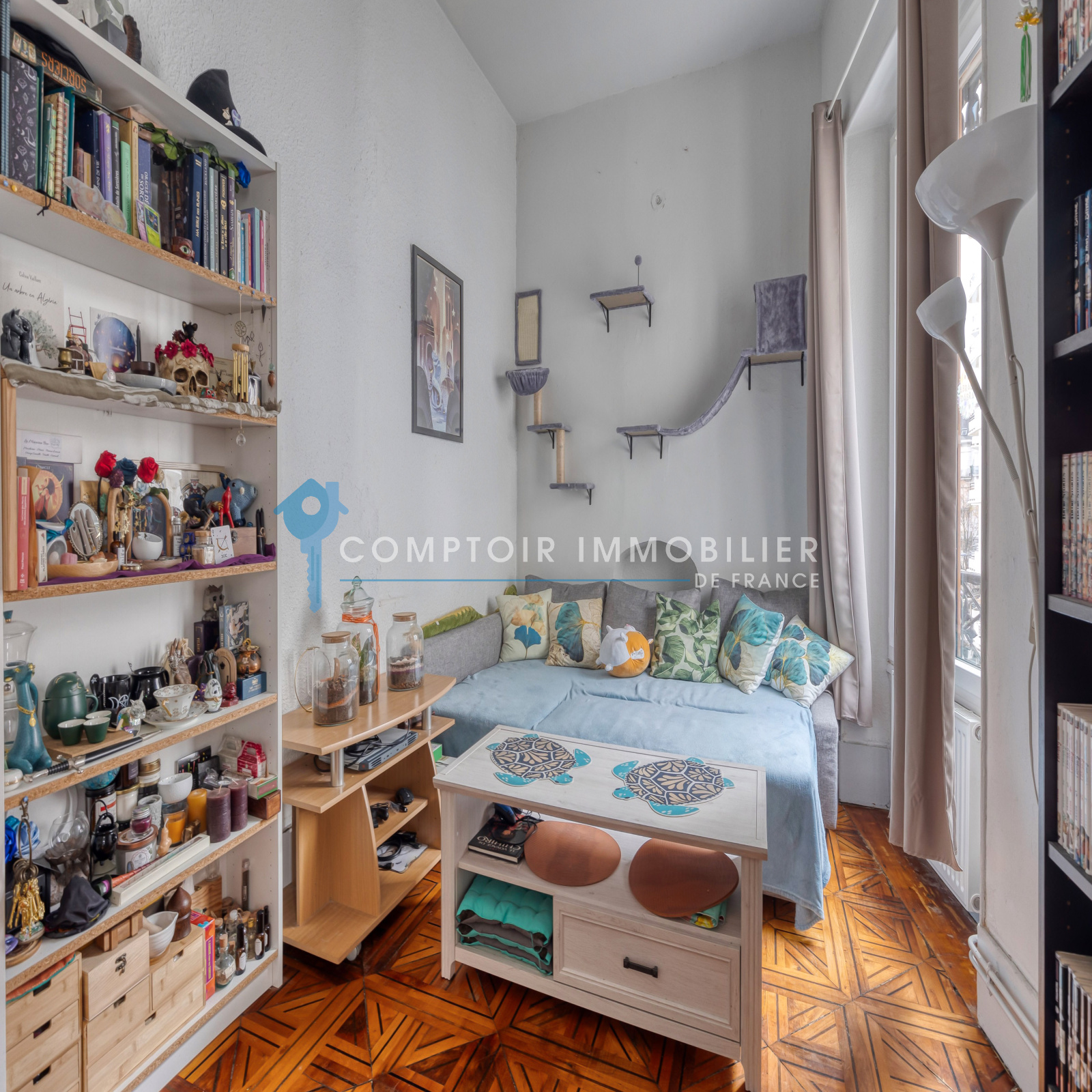 Le bien est situé au quatrième étage, sans ascenseur, d'une copropriété des années 1940. Le bien est vendu avec un galetas et une cave en sous-sol.