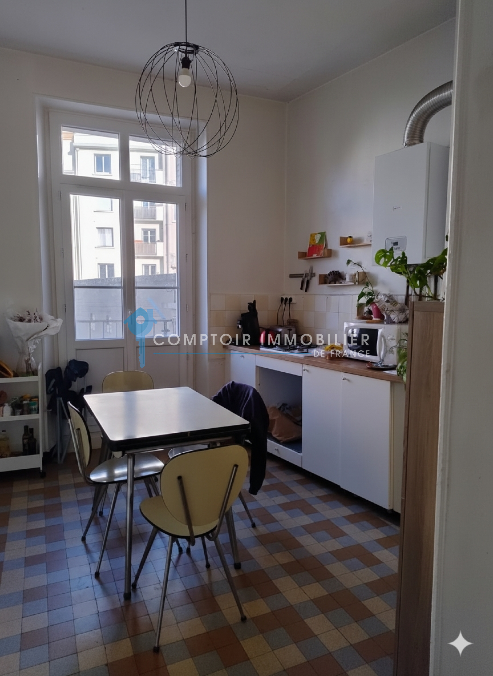 Avec le charme de l'ancien cet appartement en parfait état se compose ainsi : Un hall d'entrée desservant une grande cuisine avec balcon donnant sur cour intérieure, une pièce de vie , une chambre et une salle de bains ;WC séparés. Le chauffage et la production d'eau chaude sont assurés par une chaudière individuelle au gaz. Les menuiseries sont en PVC double vitrage. Les charges de copropriété sont de 686 euros/an et la taxe foncière de 1464 euros. L'appartement est actuellement loué (bail nu en cours jusqu'au 21/09/2028) pour un loyer de 583eur+46eur de prov de charges.