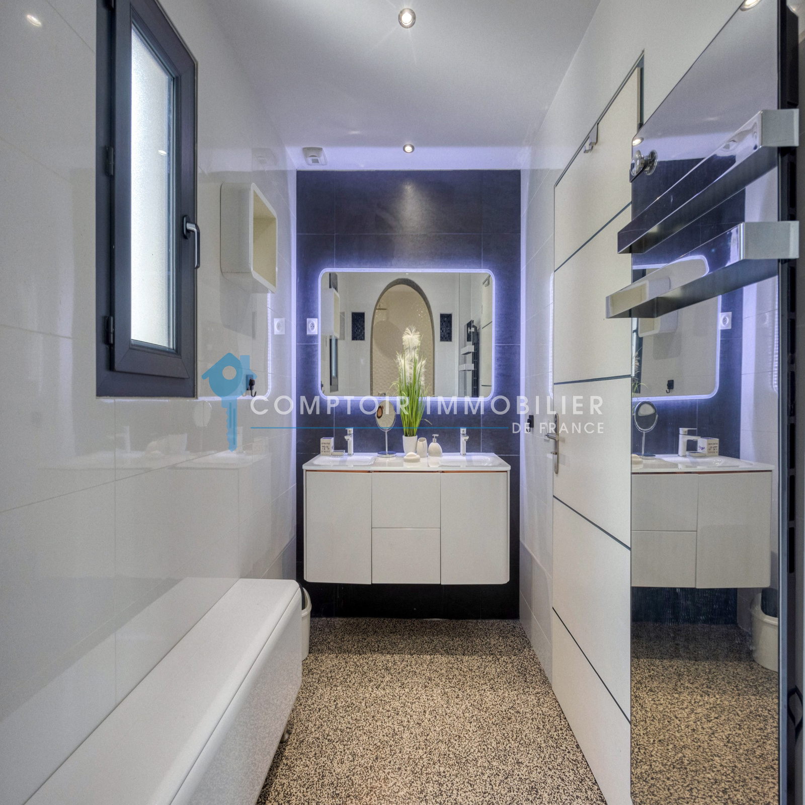De belles prestations : Sols en résine dans toute la maison, chaudière individuelle au gaz a condensation installée en 2018, plancher chauffant, climatisation électrique par pompe a chaleur type split, volets roulants électriques avec fermeture centralisée, système d'alame intégrée , visiophone.