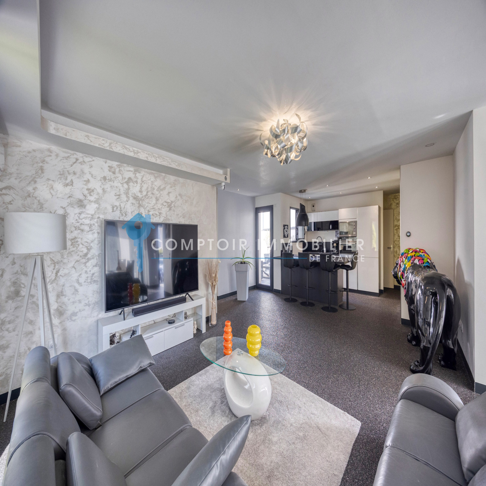 Grande pièce de vie Salon/ Salle à manger / Cuisine de 56m2 permettant d'accéder d'un coté au patio, de l'autre coté au jardin. Bonne expositiion traversante Est/Sud/Ouest.
