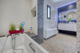Coin nuit séparé avec 3 grandes chambres avec placards intégrés dont une grande suite parentale, un bureau et une salle de bains avec baignoire.