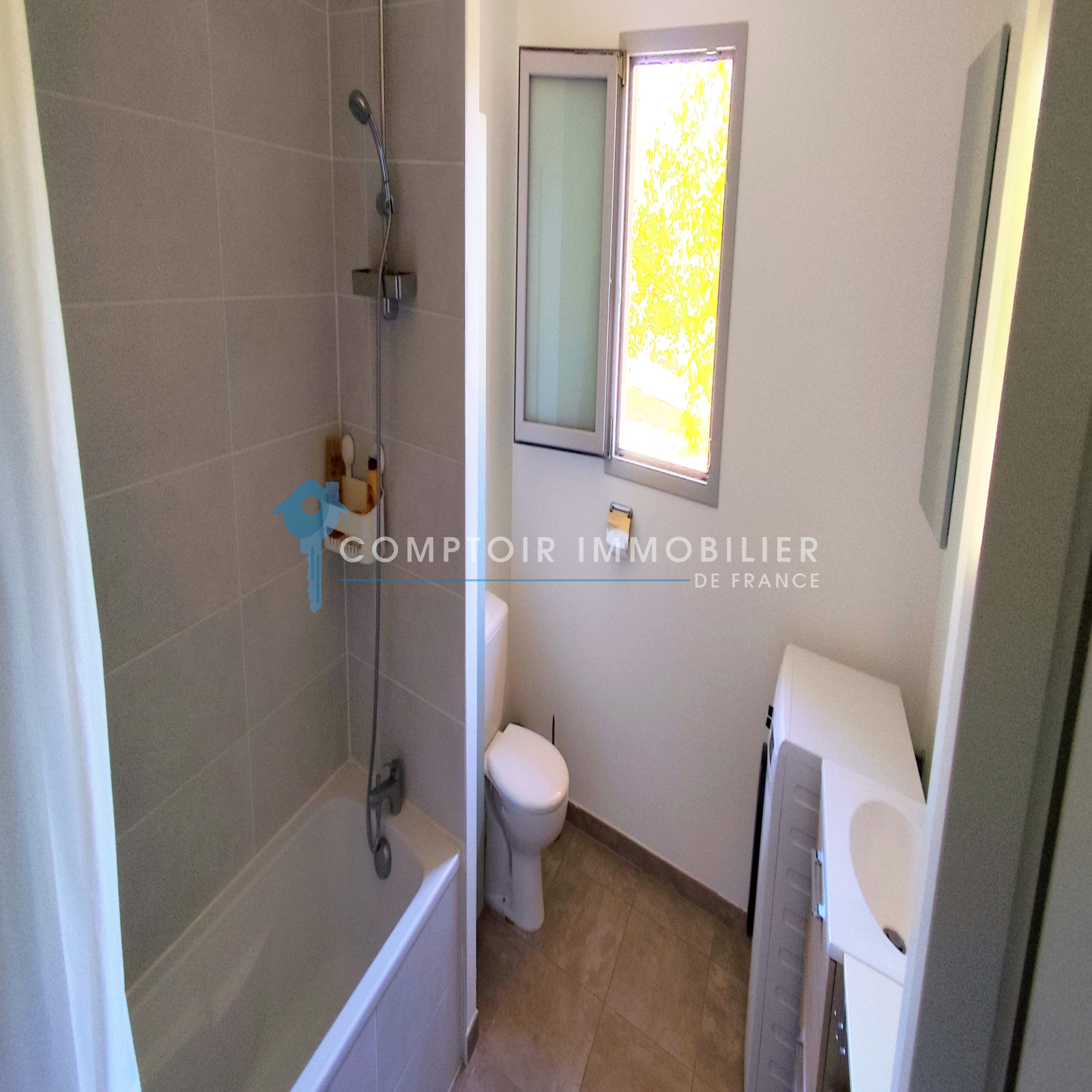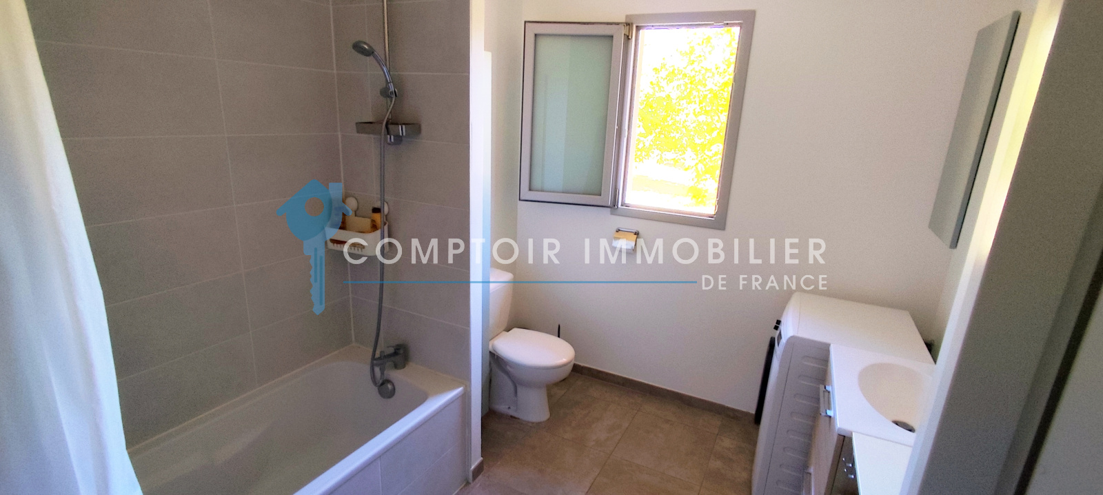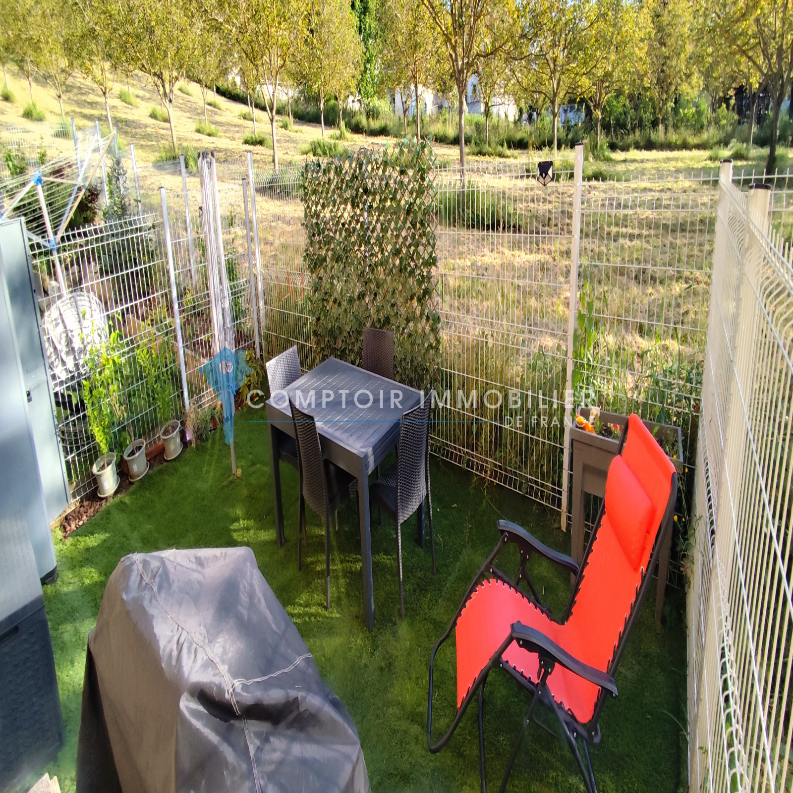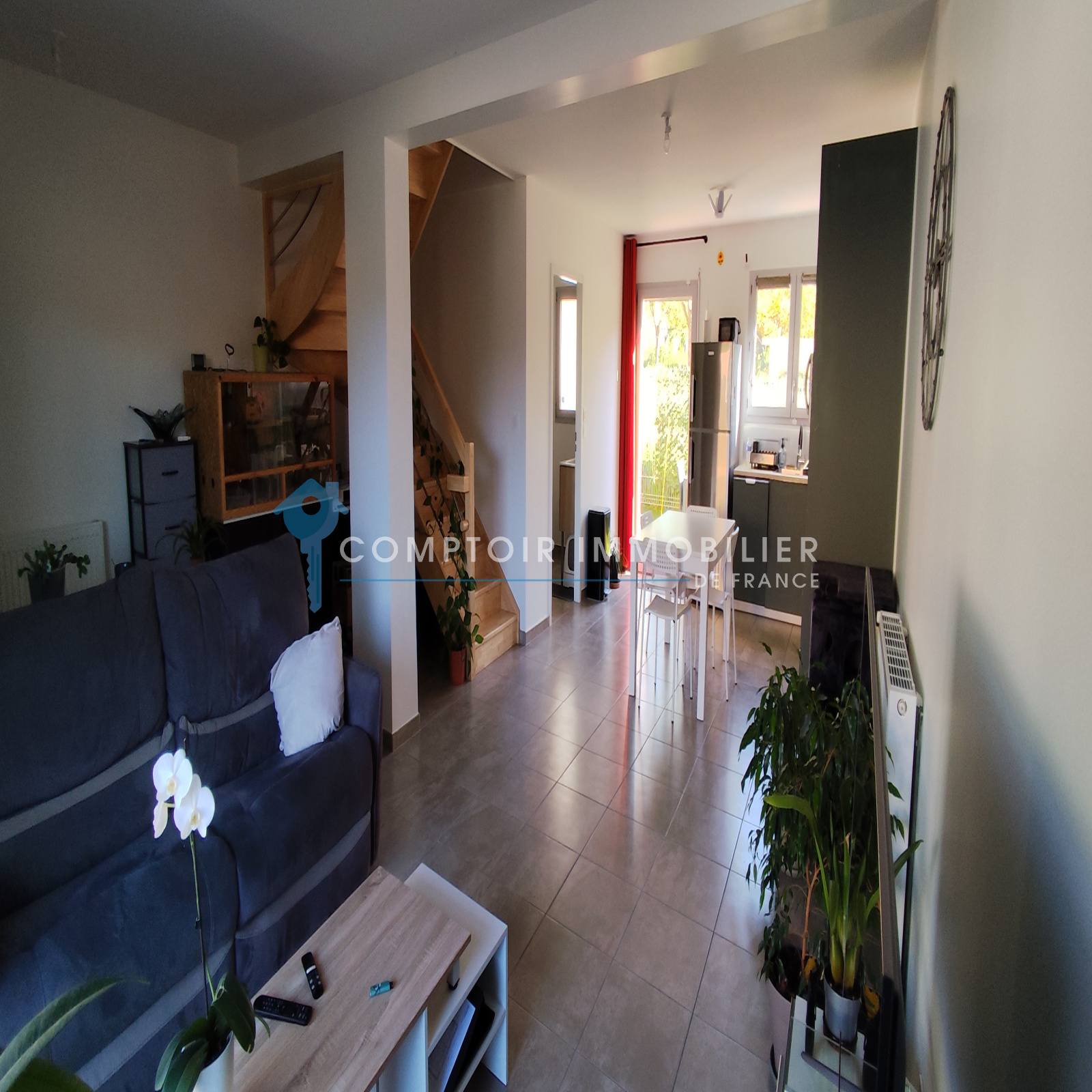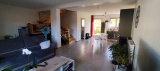 En rez-de-chaussée, une pièce de vie de 42m2 avec cusinie semi-équipée et accès aux extérieurs Nord et Sud (parcelle totale de 119m2). Aussi, une salle d'eau avec wc.